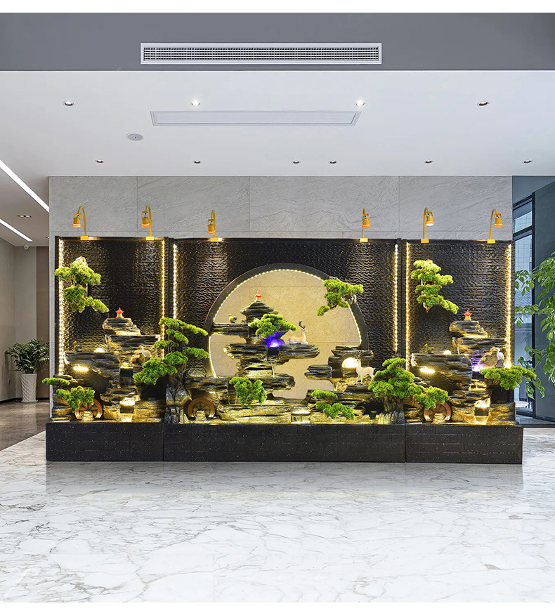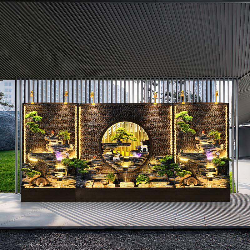 물 커튼 벽 흐르는 물 스크린 현관 칸막이 사무실 야외 안뜰 바위 물고기 연못 분수 풍경 장식