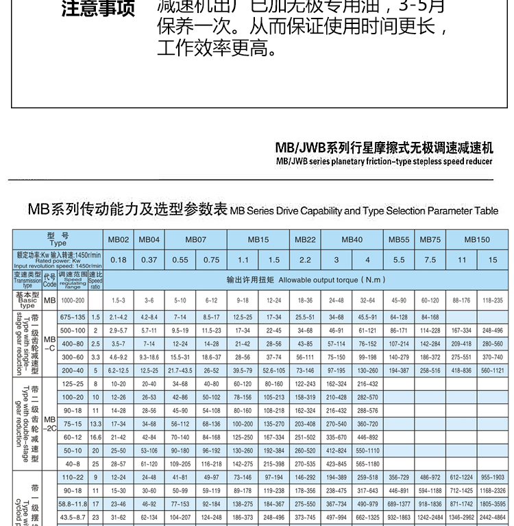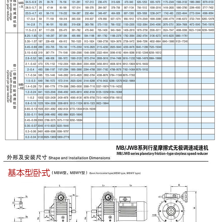 JWB/MB 무단 속도 감속기 모터 무단 전송 완료 0.37KW/0.75KW/1.5KW