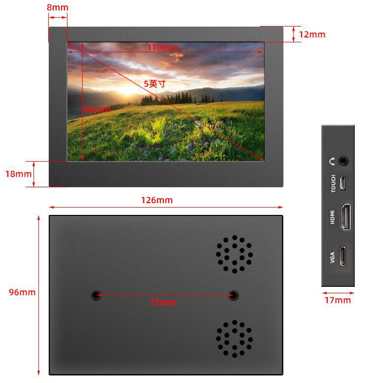 재고 도매 5 인치 HD 용량 성 터치 디스플레이 HDMI VGAmini 휴대용 라즈베리 파이 디스플레이
