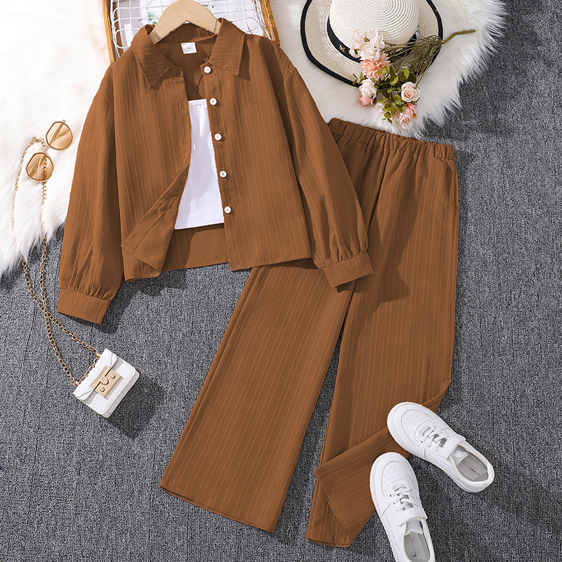여자 의류 봄 국경 새로운 유럽과 미국 아동복 싱글 브레스트 긴팔 탑과 바지 아동복