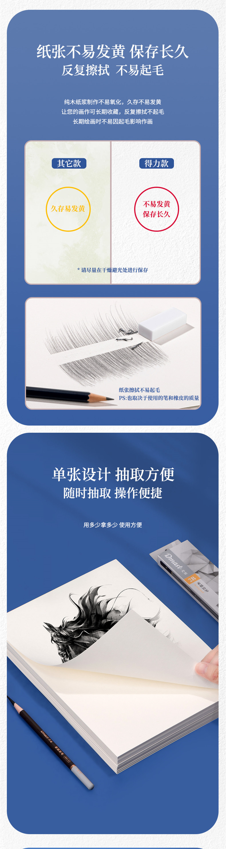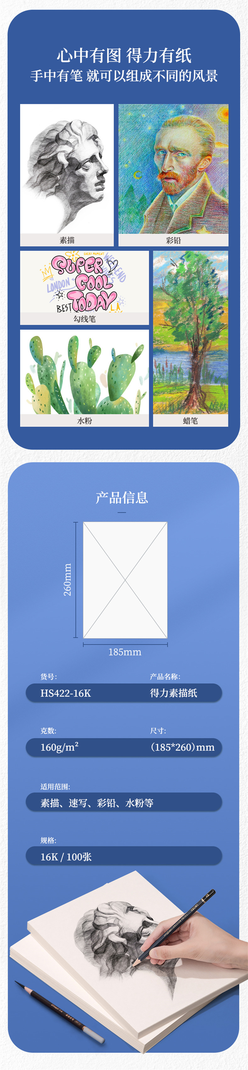 델리 HS422/HS423 스케치 종이 16K/4K/8K/A3/A4 아트 스케치 손으로 그린 복사 스케치 그림