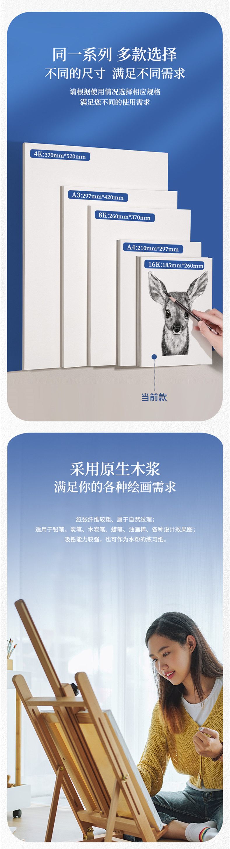 델리 HS422/HS423 스케치 종이 16K/4K/8K/A3/A4 아트 스케치 손으로 그린 복사 스케치 그림스토어 가기