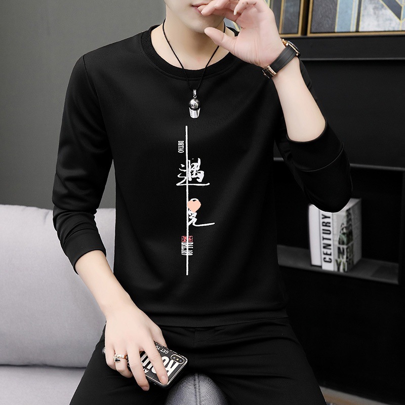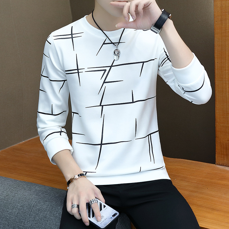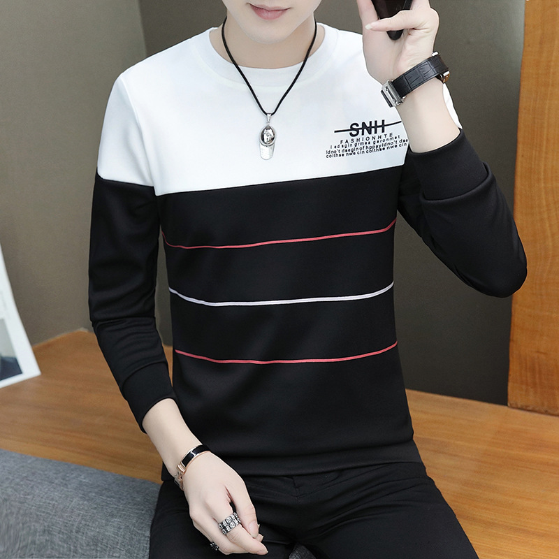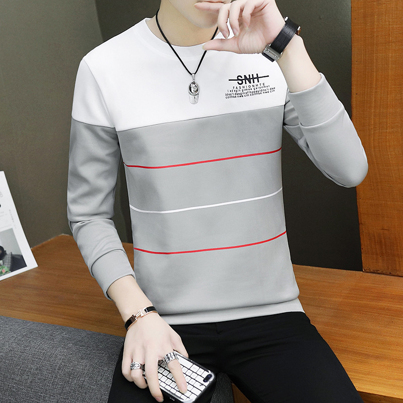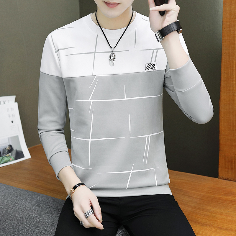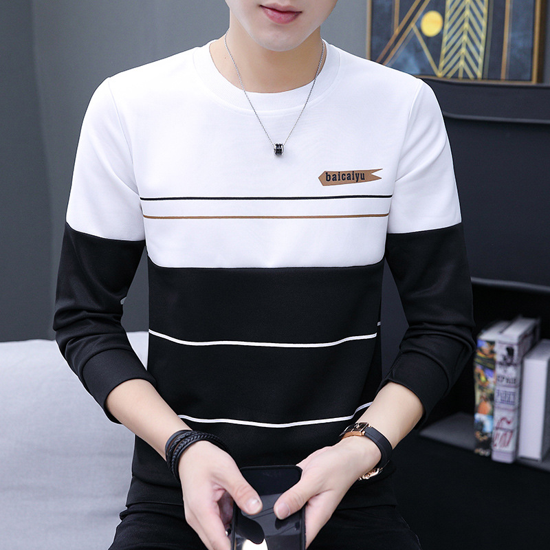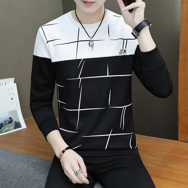 봄과 가을 남성 긴팔 티셔츠 한국식 슬림핏 내복 옷 2024 학생들을위한 새로운 패션 땀 무료 배송스토어 가기