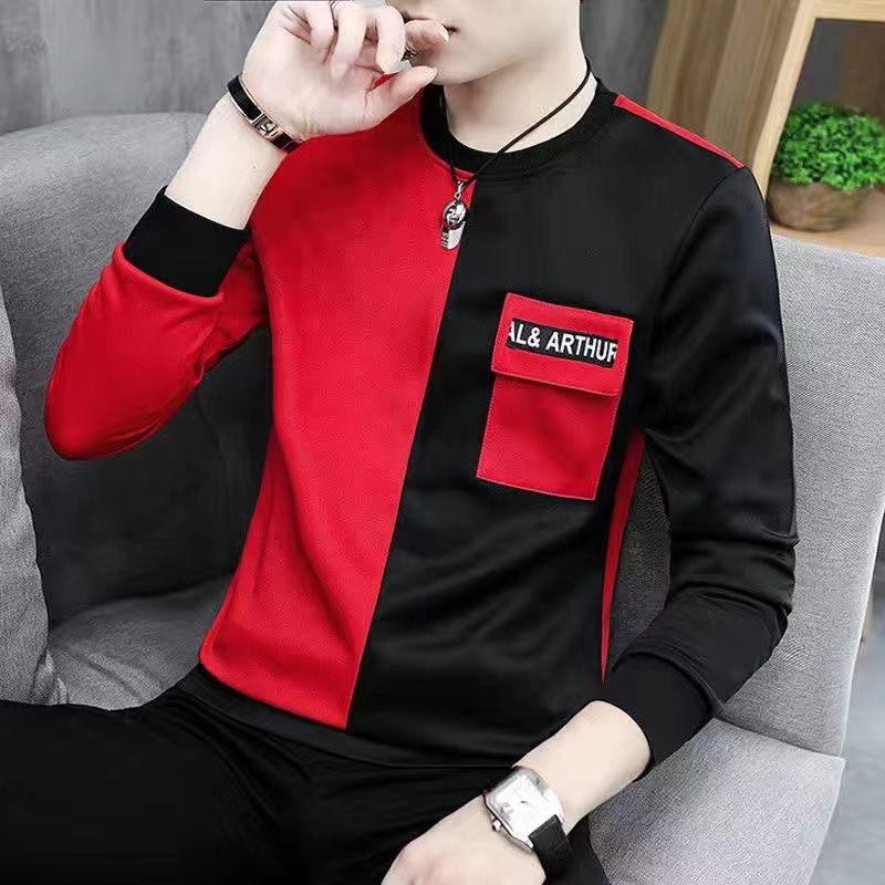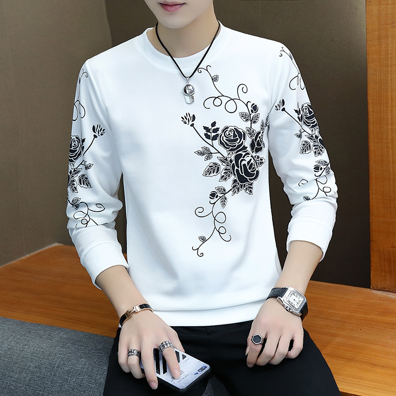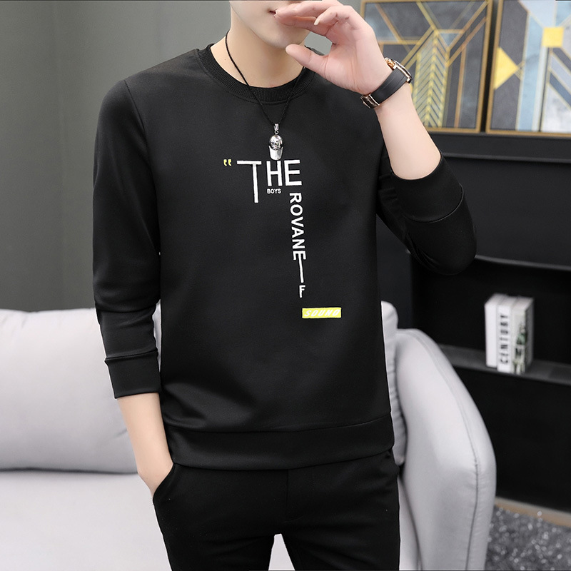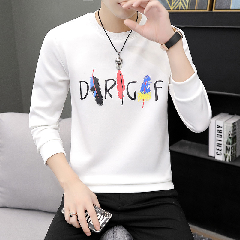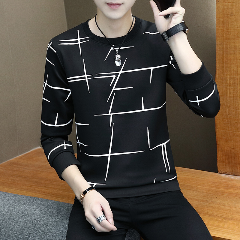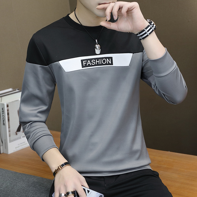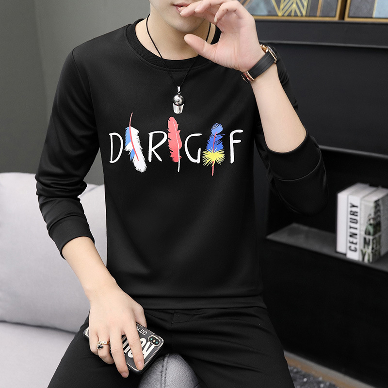봄과 가을 남성 긴팔 티셔츠 한국식 슬림핏 내복 옷 2024 학생들을위한 새로운 패션 땀 무료 배송스토어 가기