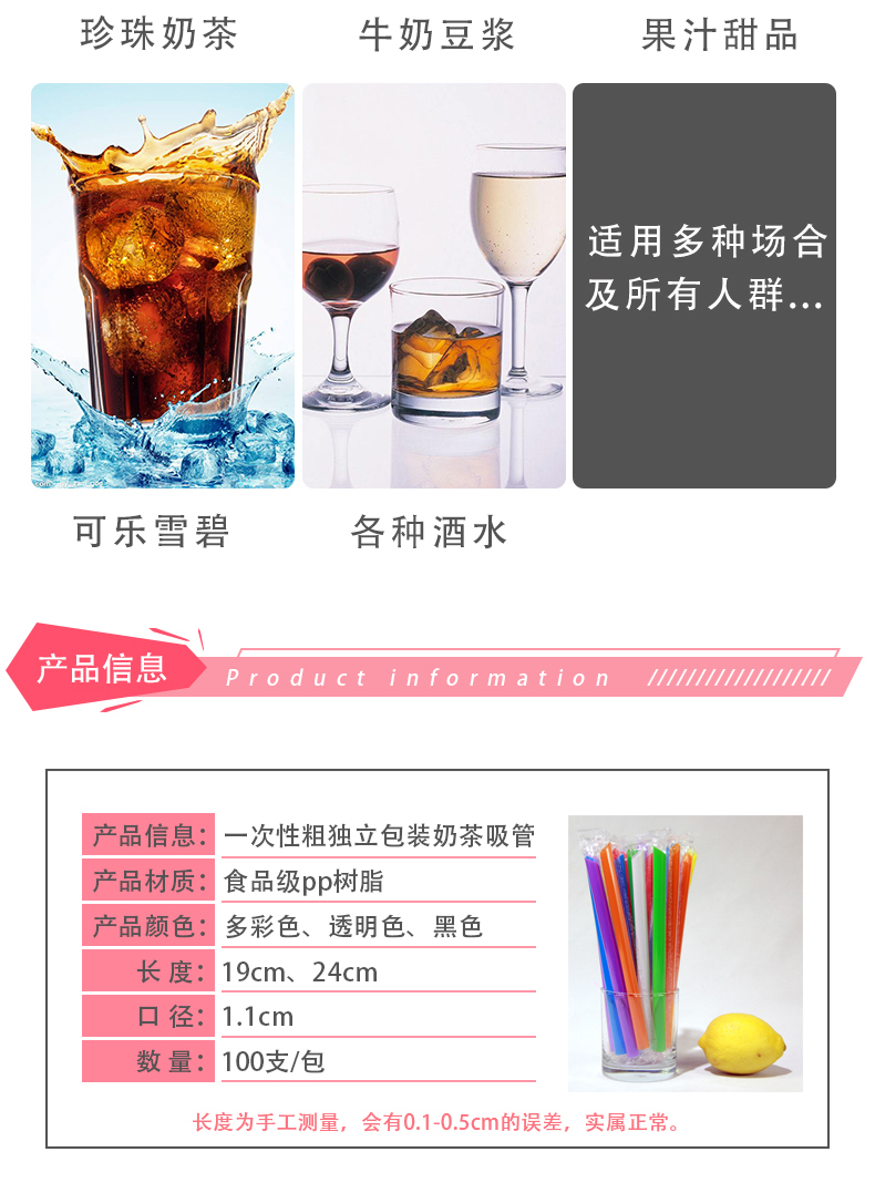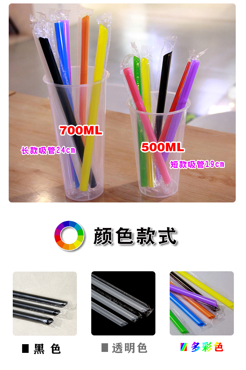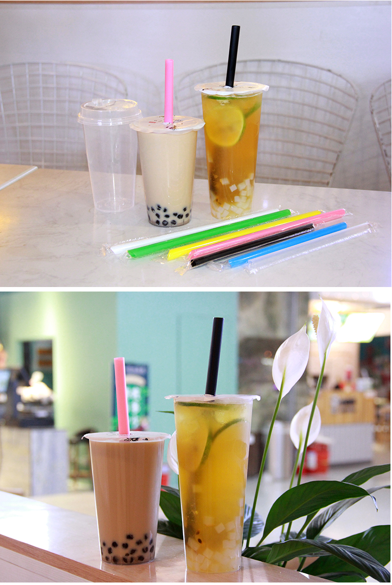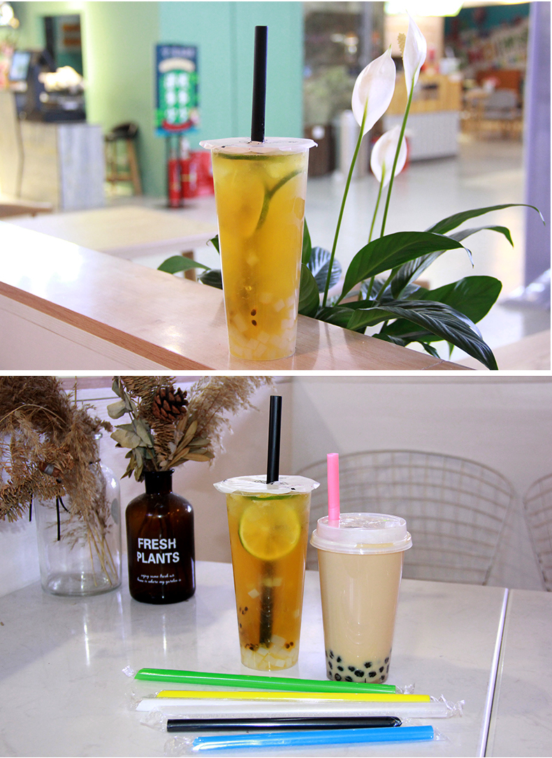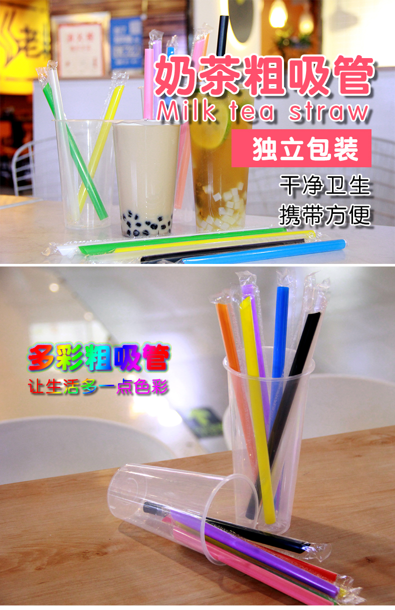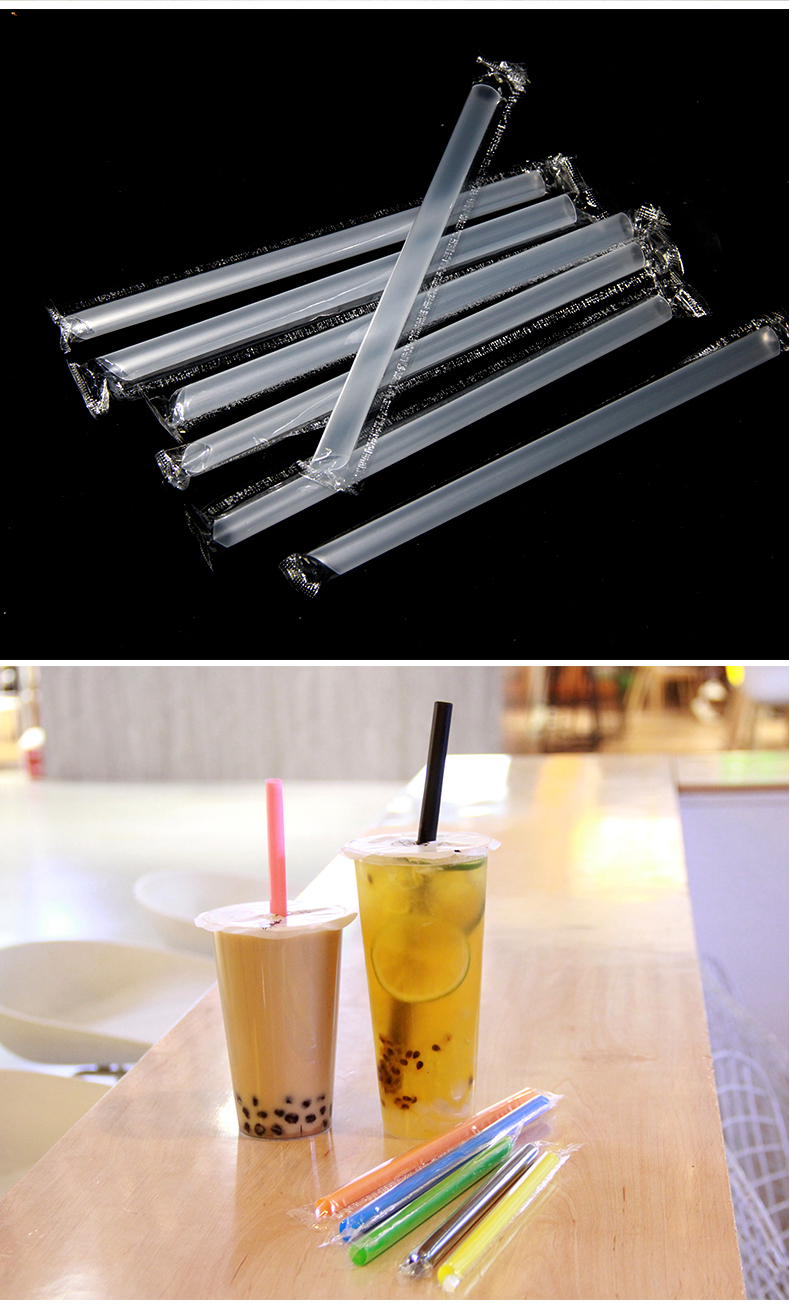 일회용 밀짚 우유 차 밀짚 두꺼운 짚 대형 짚 상업 독립 포장 투명 색상 두꺼운 짚