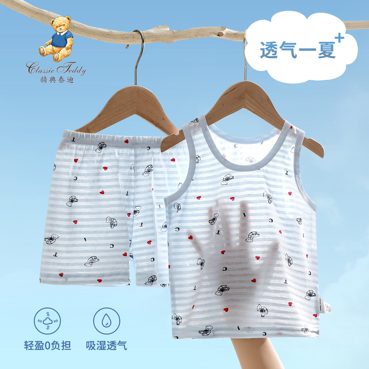 클래식 테디 아동복 여름 새 소년 홈 의류 세트 어린이 민소매 탑 반바지 얇은 투피스 세트스토어 가기