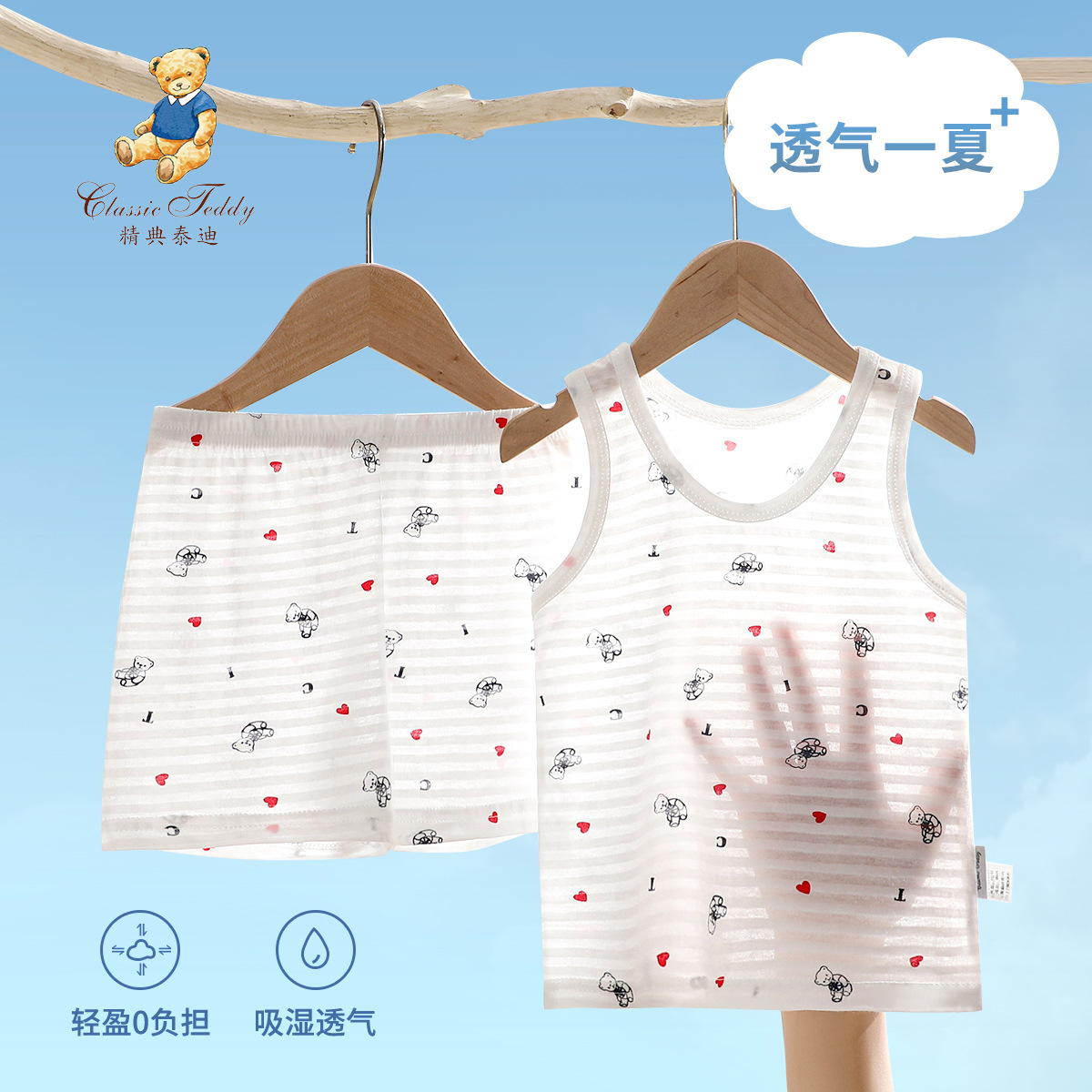 클래식 테디 아동복 여름 새 소년 홈 의류 세트 어린이 민소매 탑 반바지 얇은 투피스 세트