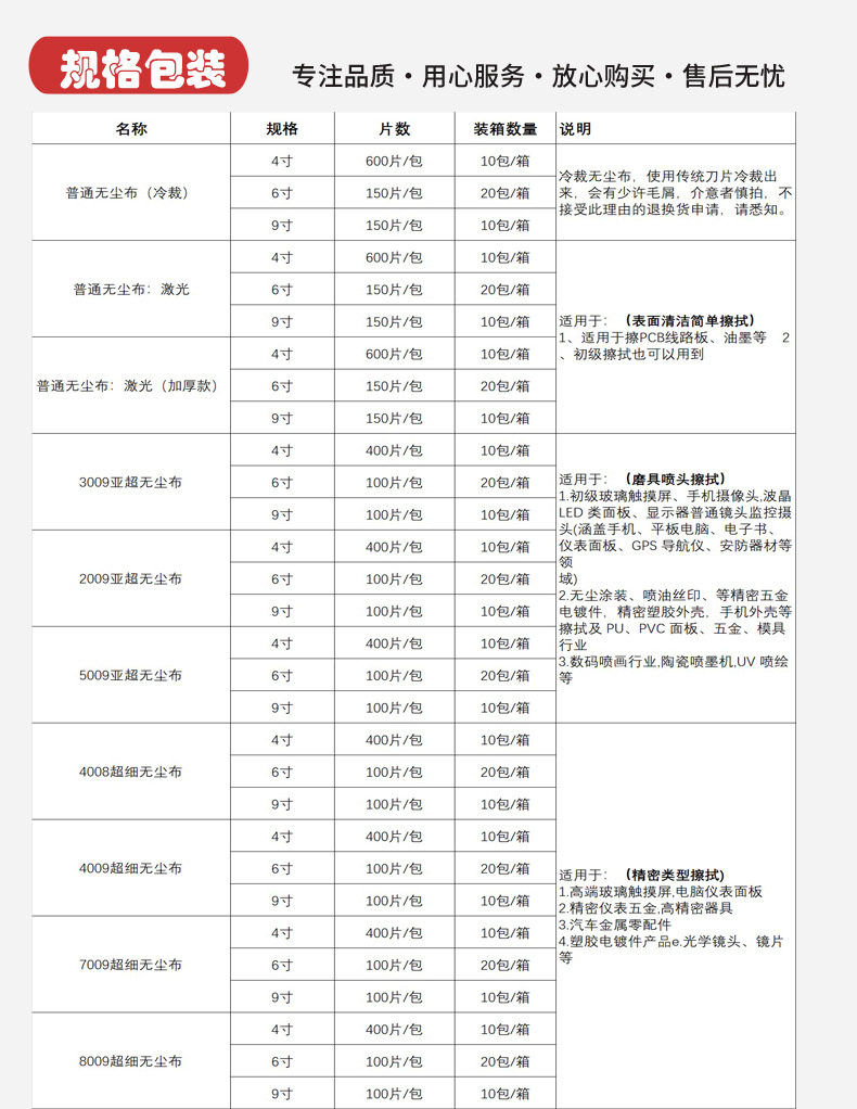 • 1009SLE/DLE 먼지 없는 천: 레이저