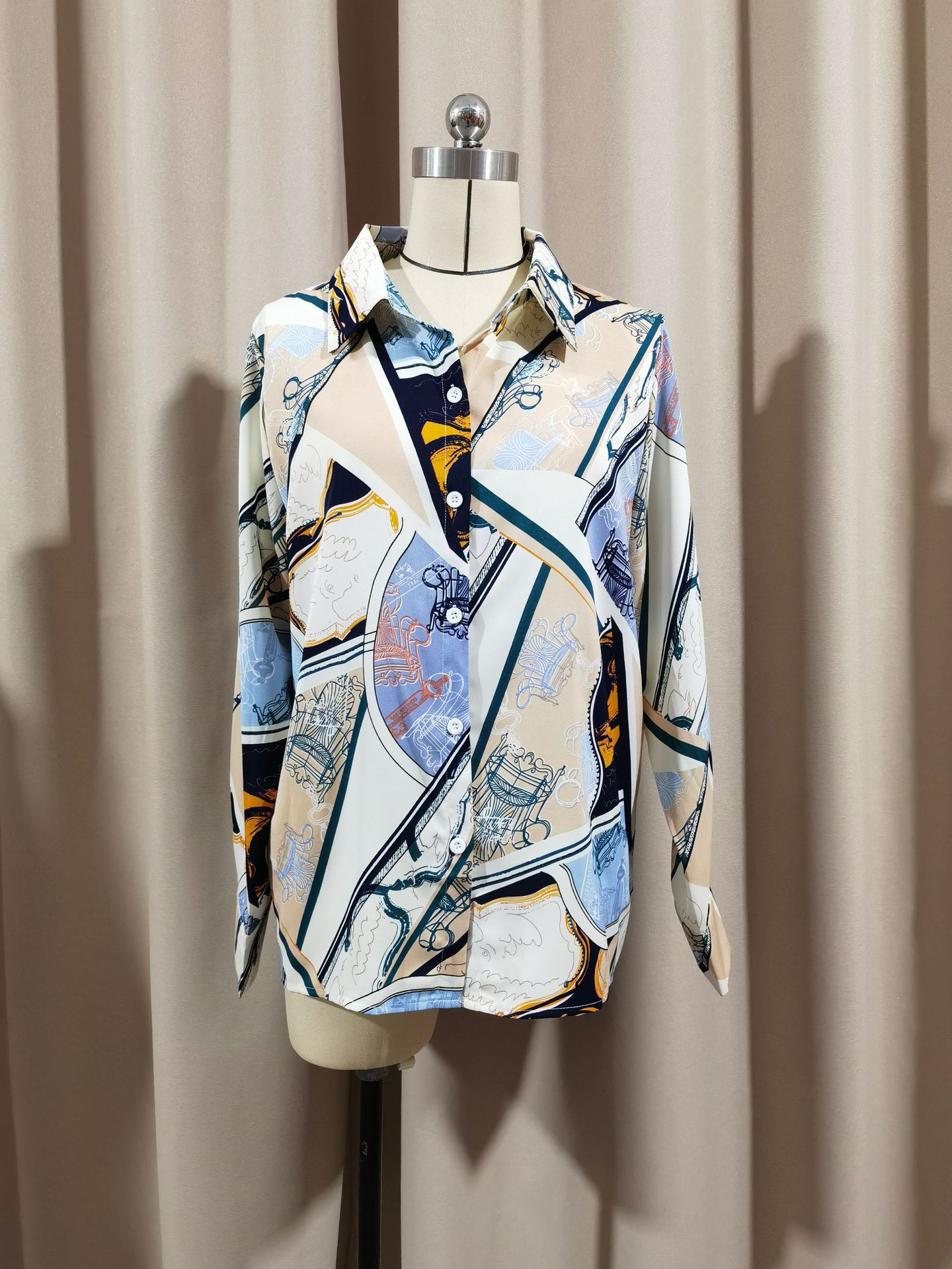 2025 유럽 및 미국 아마존 크로스보더 신상품 인기 상품 출퇴근 스타일 패션 프린트 긴팔 쉬폰 셔츠 여성용