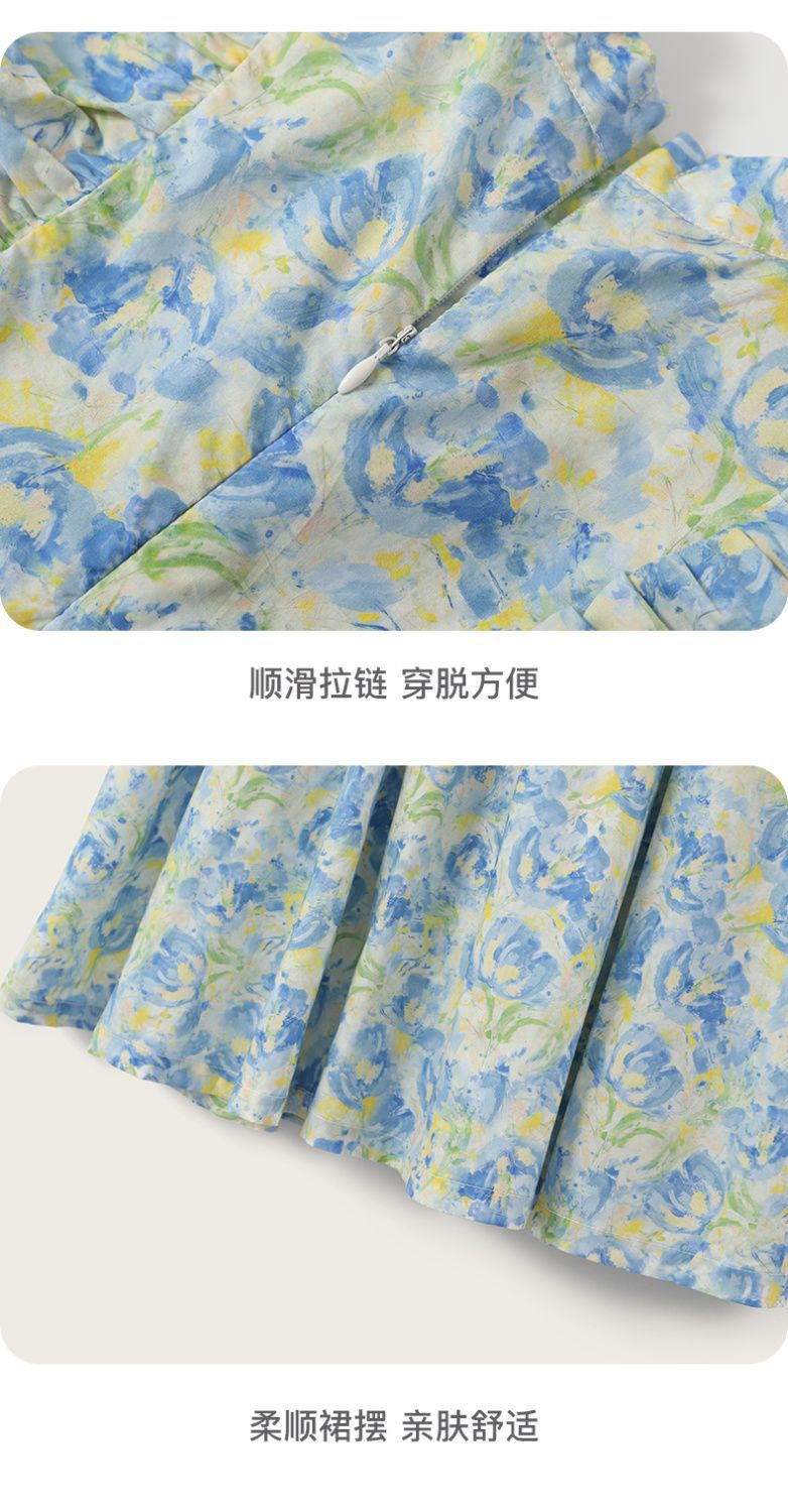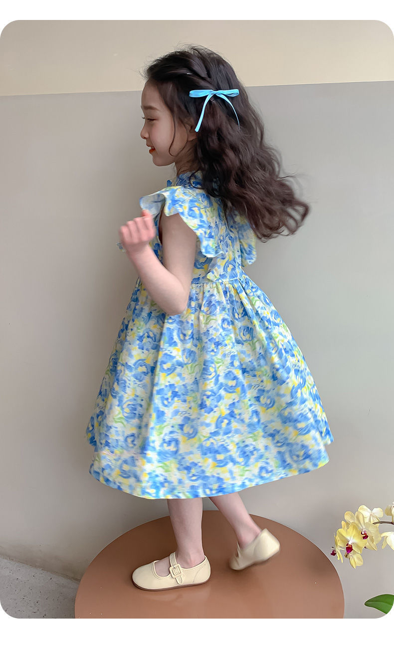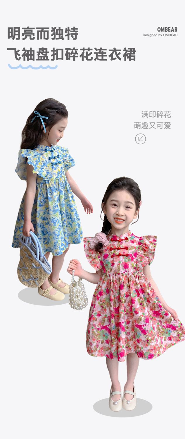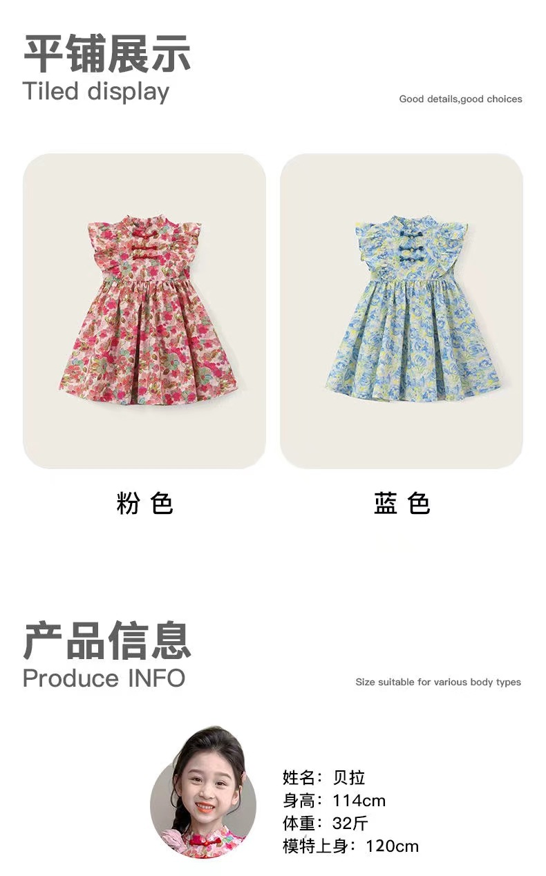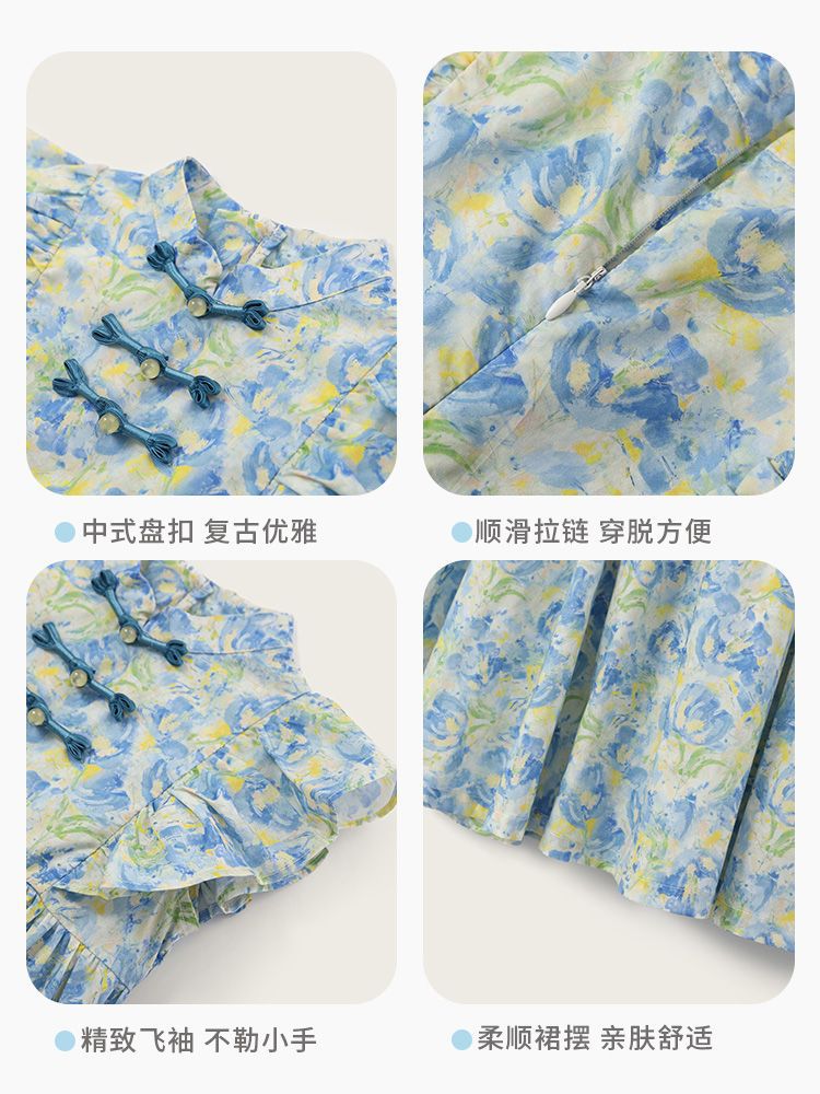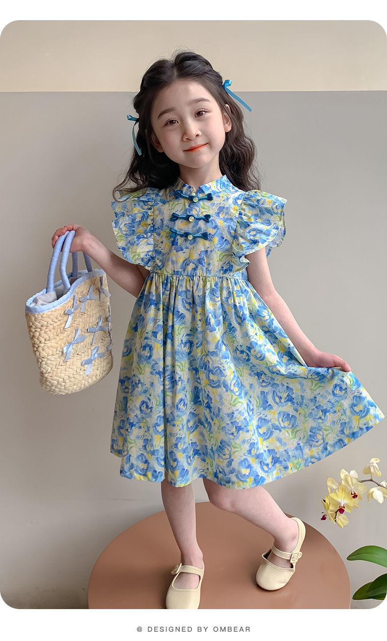 소녀 여름 새로운 유행 중국 스타일 원피스 세련된 작은 비행 소매 어린이 국가 스타일 꽃 공주 원피스스토어 가기
