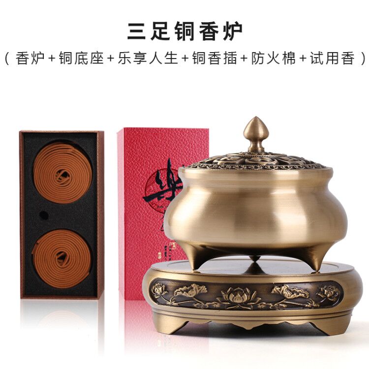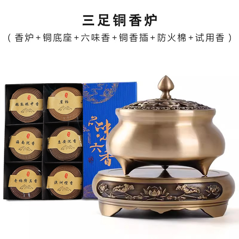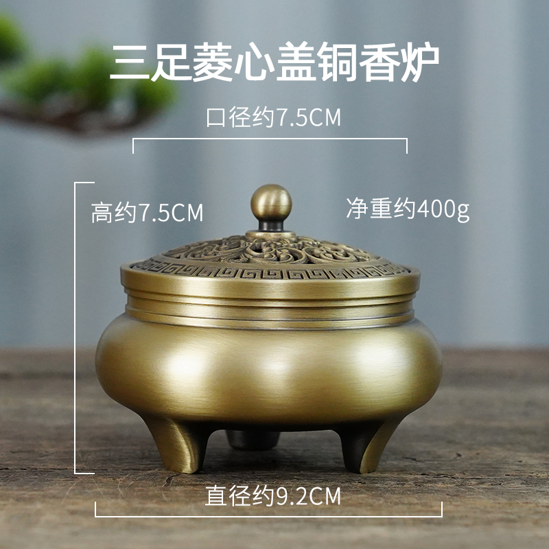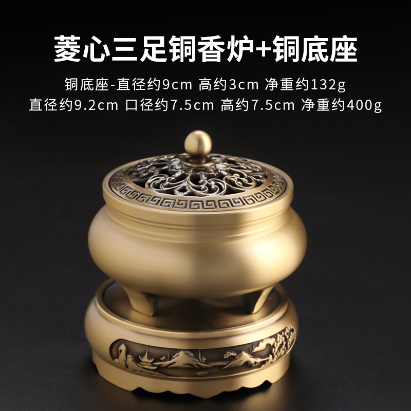 • 작은 삼족 다이아몬드 코어 구리 난로 + 합금 연꽃 베이스
