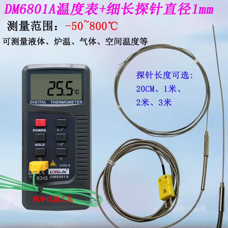 접촉 온도계 DM6801A 디지털 디스플레이 K 형 열전대 310-1mm 프로브 모델 온도계스토어 가기