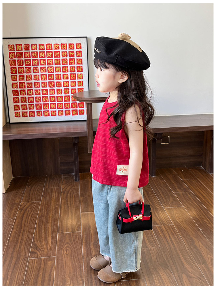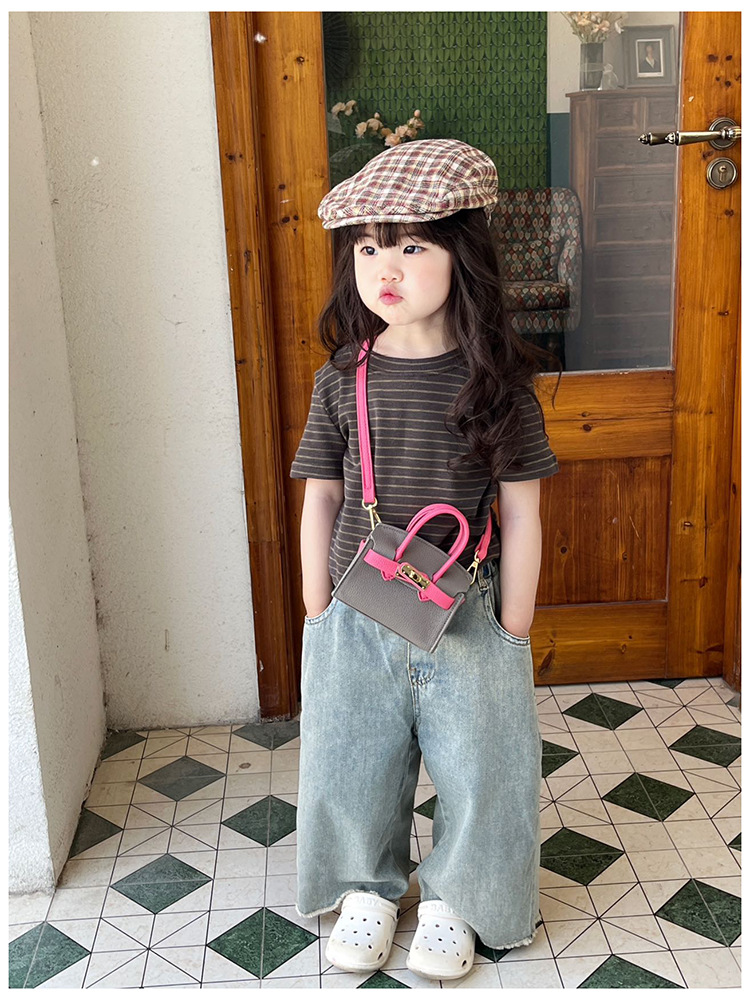 어린이 켈리 가방 어깨 미니 컬러 블록 유행 휴대용 소녀 공주 샤넬 스타일 웨스턴 스타일 캣워크 크로스 바디 백스토어 가기