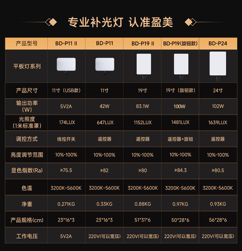 • 11 인치 [대부분의 사람들은 더 많은 사용 기능을 실현하기 위해 하나 더 많은 램프를 구입] 3 램프 패키지 A [생방송, 비디오 녹화, 사진 등]]