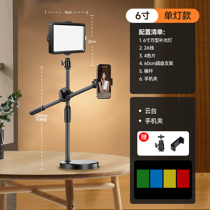 • 6inch 단일 조명 + [단일 카메라 브래킷 데스크탑 모델] 조정 가능한 컬러 칩과 함께 제공