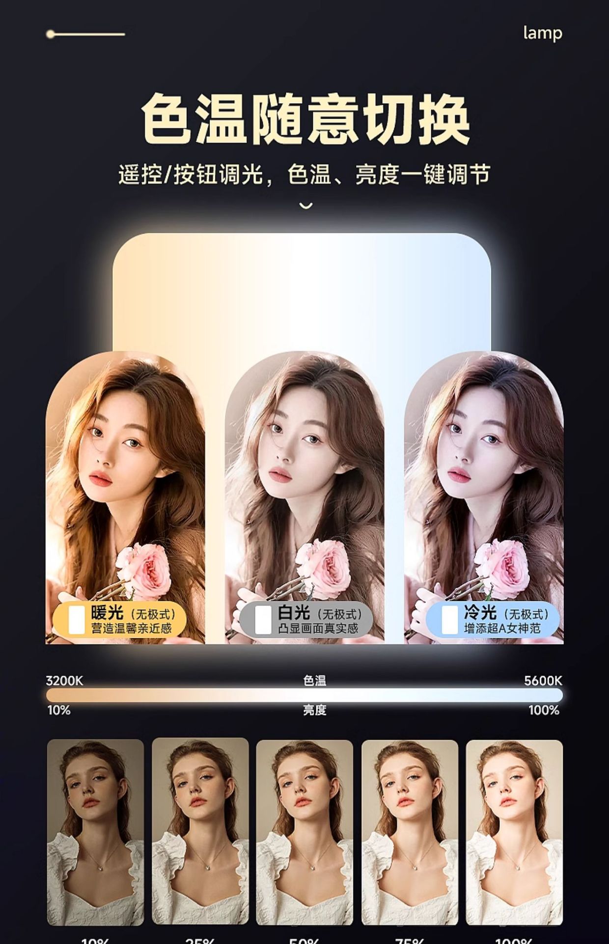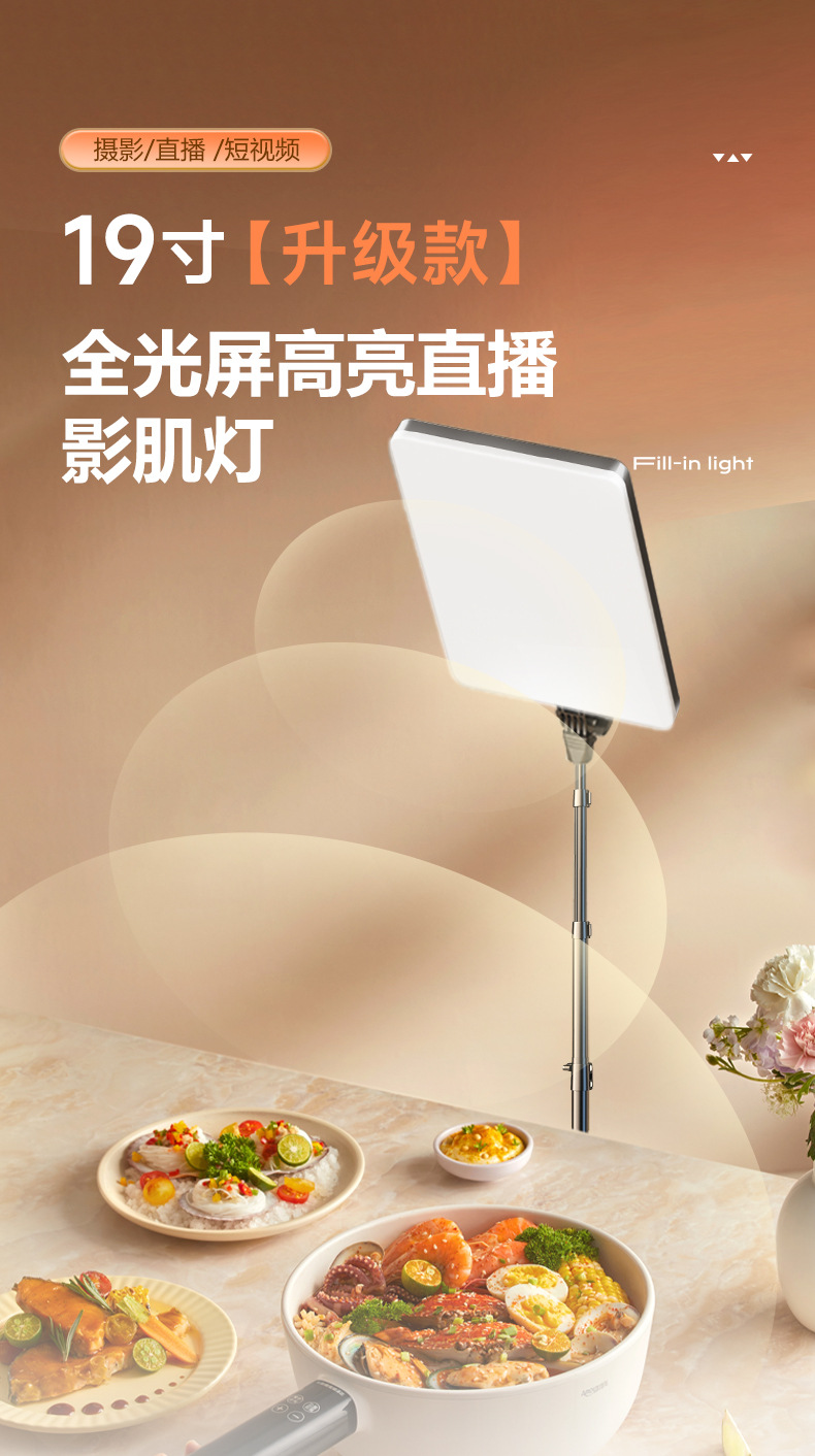 • 19인치 100w 백노브 모델, 듀얼라이트 패키지 [생방송 부드럽고 밝음/공간을 차지하지 않음] [음식/미용에 적극 추천]