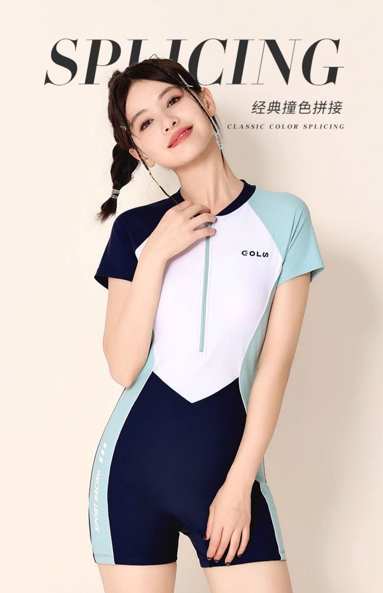 2024 신입 학생 플랫 앵글 스포츠 원피스 수영복 여성 온천 반팔 보수적 하이 엔드 슬리밍 수영복스토어 가기