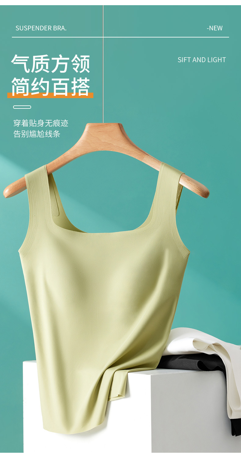여름 원활한 뷰티 백 슬링 여성 조끼 원피스 안티 워킹 스퀘어 넥 스포츠 조끼 탑 내복 외부 착용