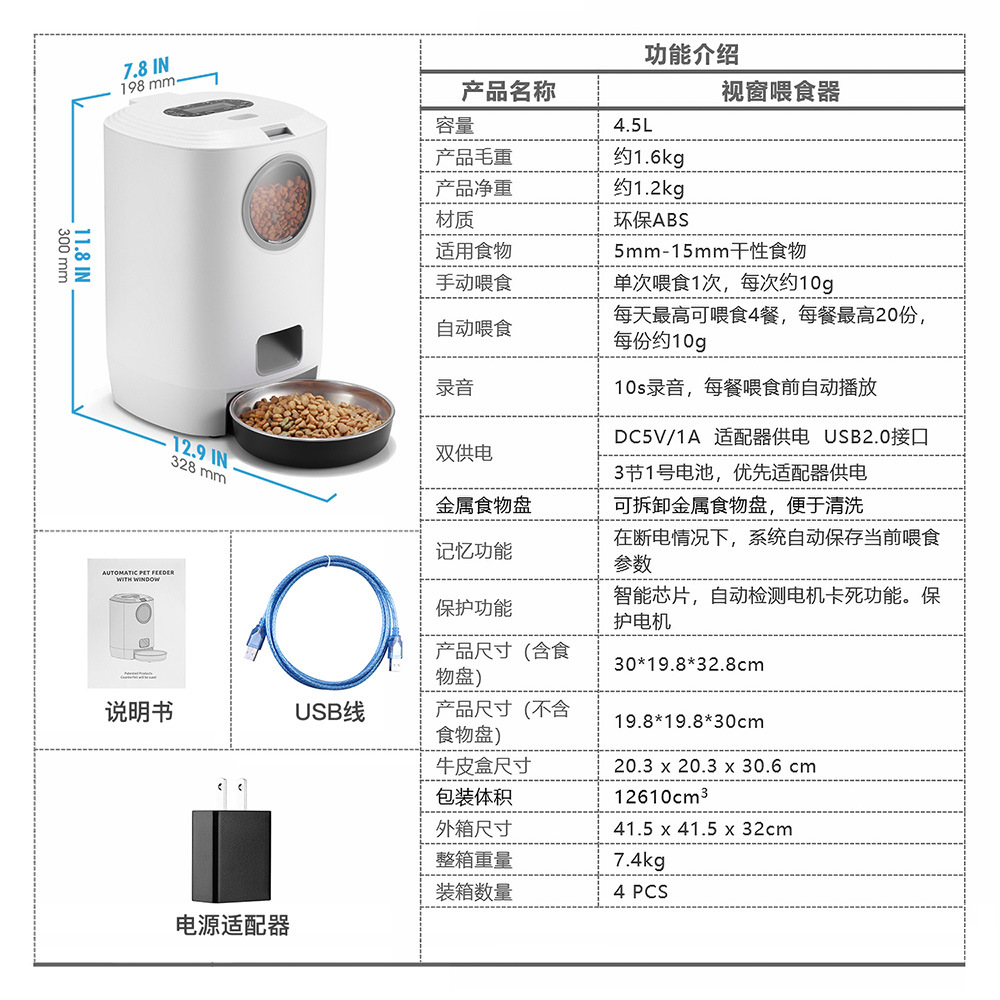 4.5L 애완 동물 피더 타이밍 정량 고양이와 개 피더 사용자 정의 녹음 작은 멀티 식사 창 피더스토어 가기
