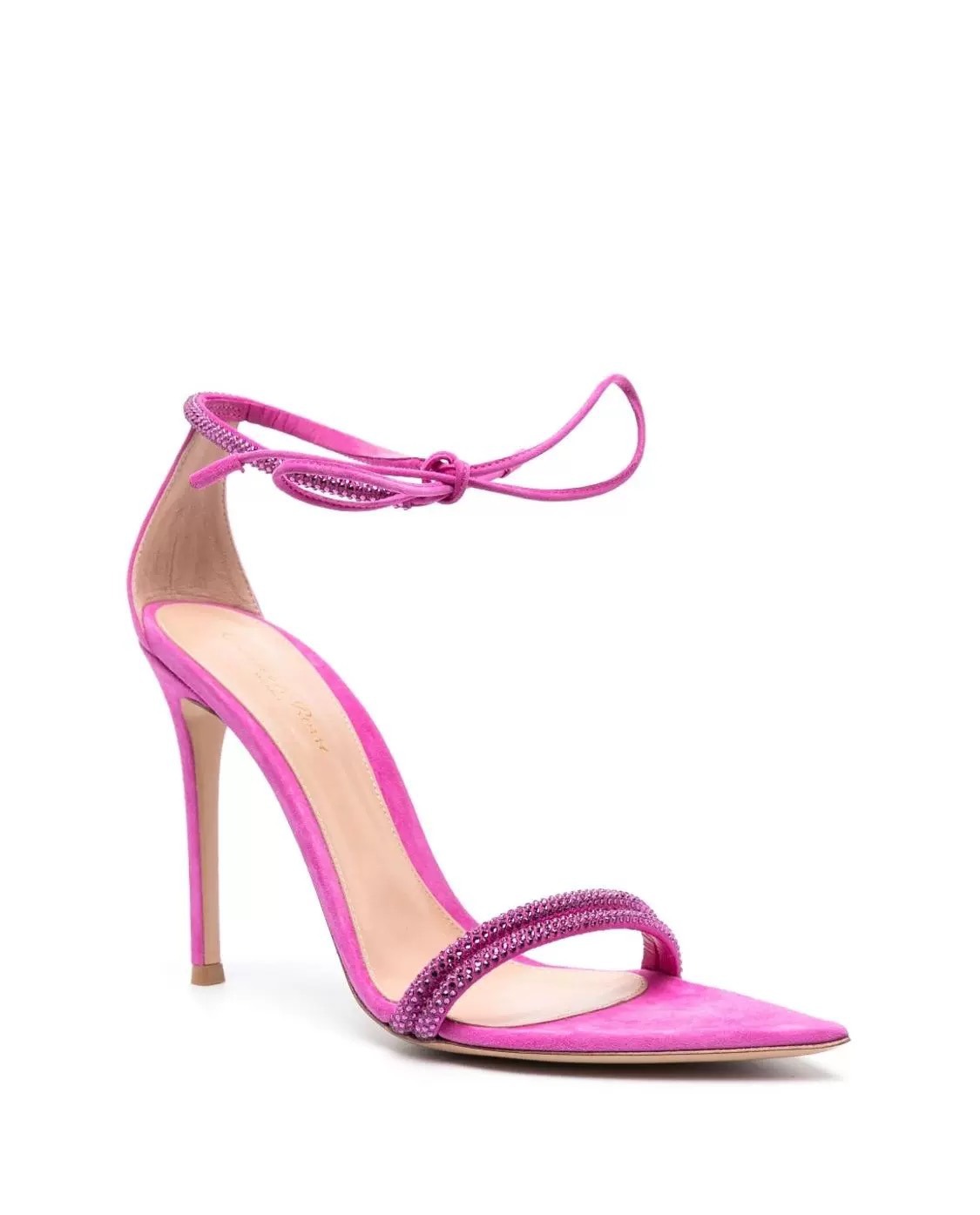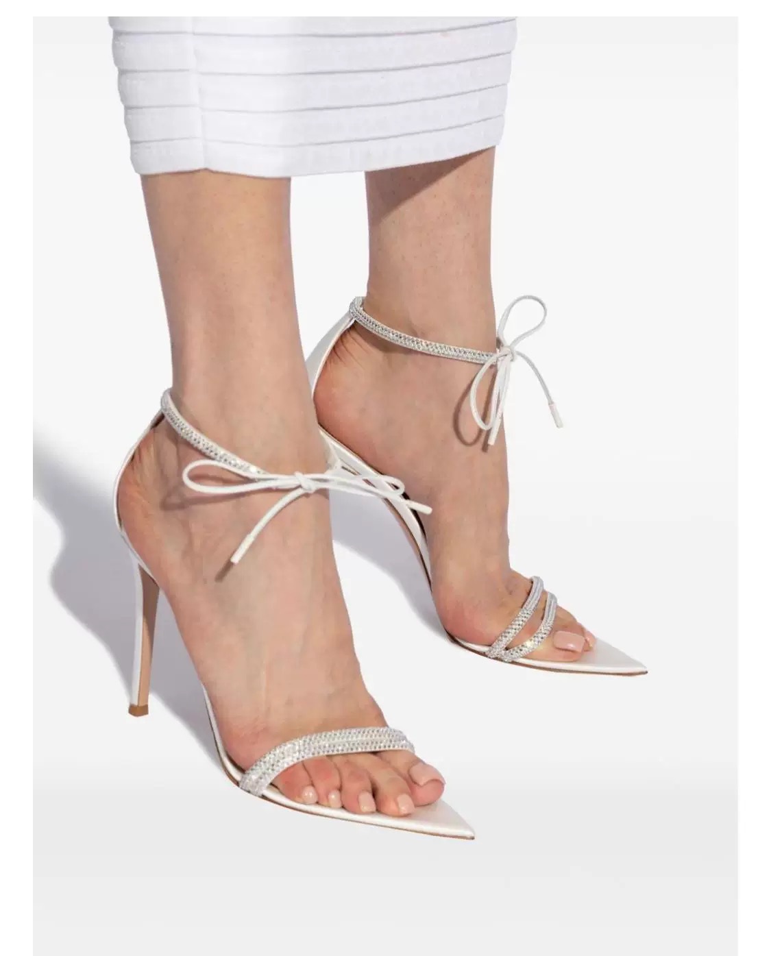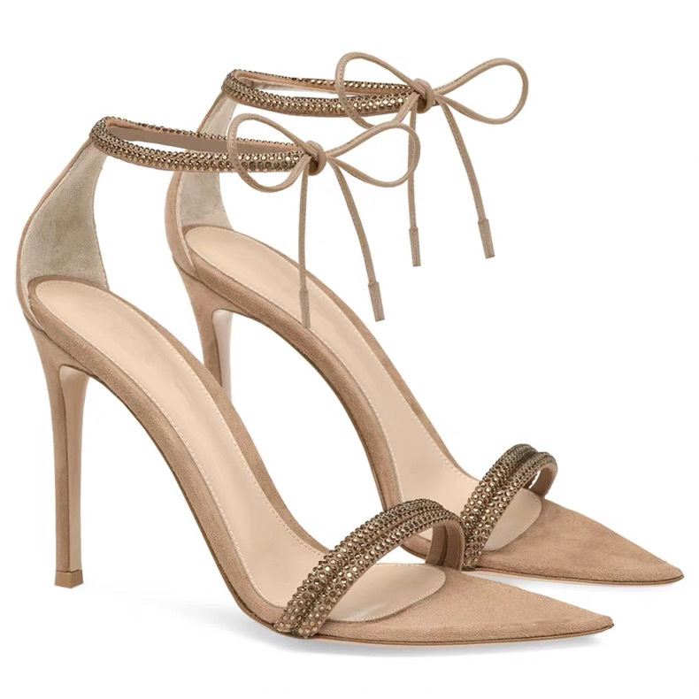 샌들 2025 새로운 여성 여름 우아한 사교계 포인팅 테이프 하이힐 올매치 패션 라인스톤 스틸레토 힐