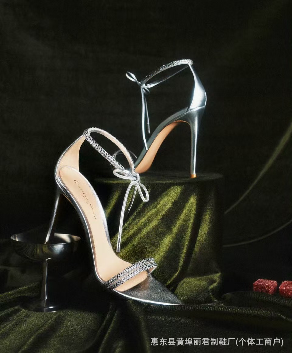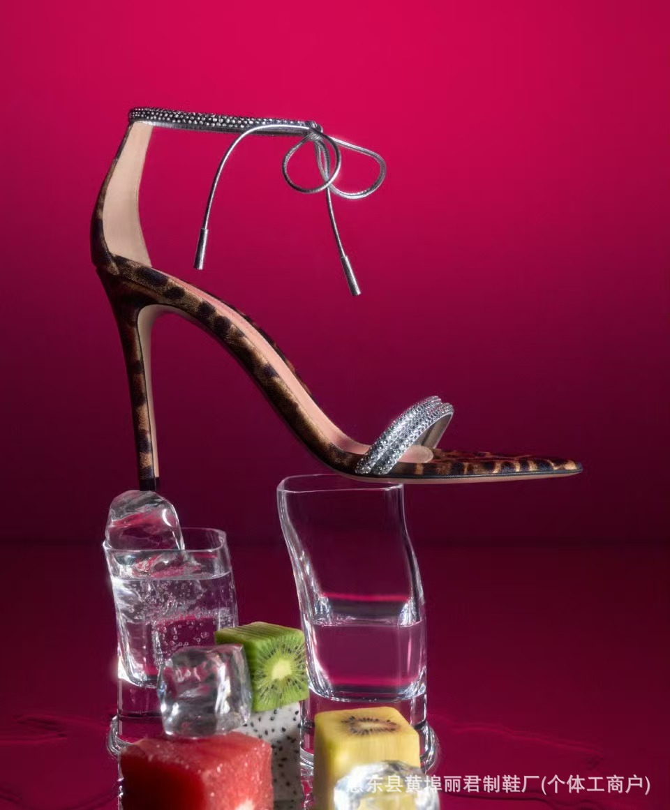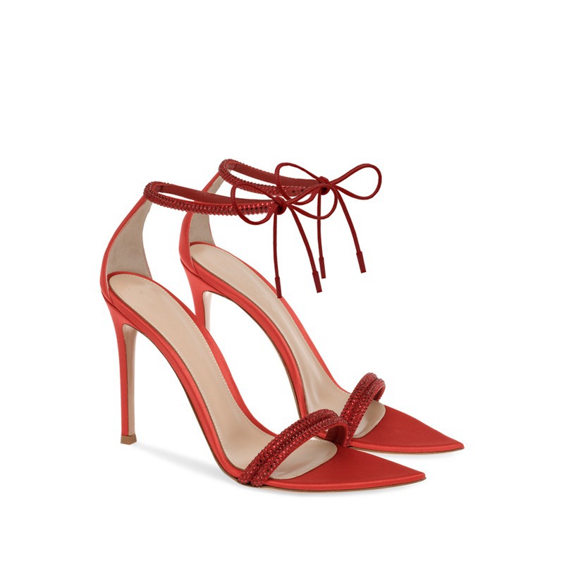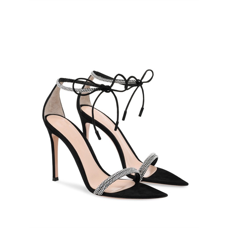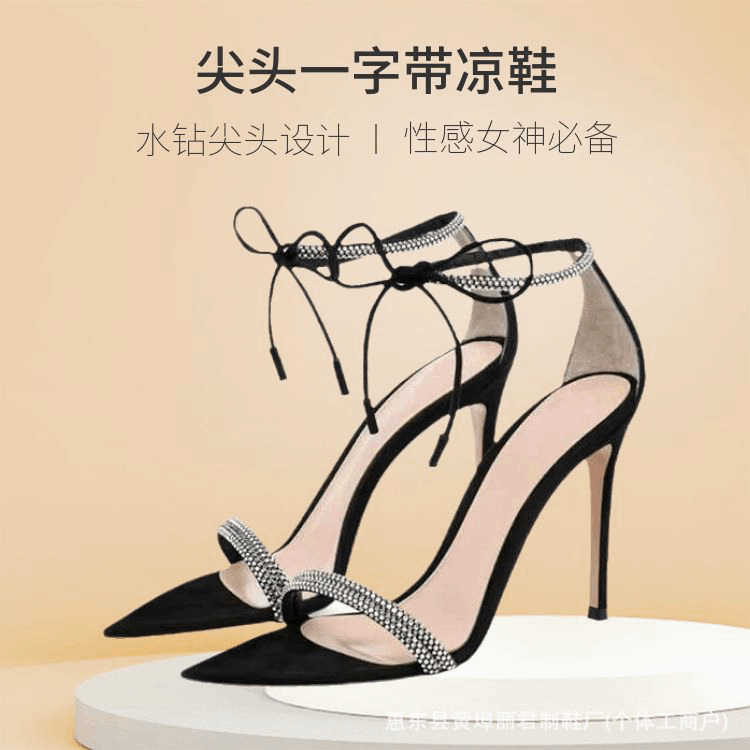 샌들 2025 새로운 여성 여름 우아한 사교계 포인팅 테이프 하이힐 올매치 패션 라인스톤 스틸레토 힐스토어 가기