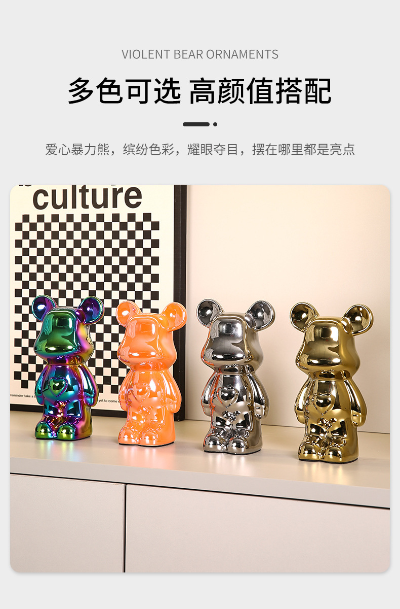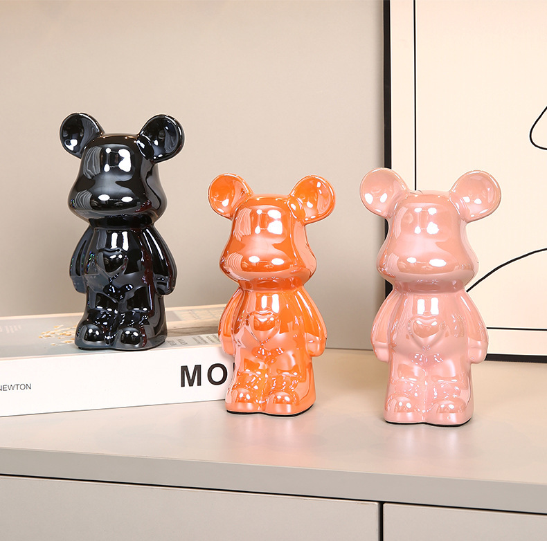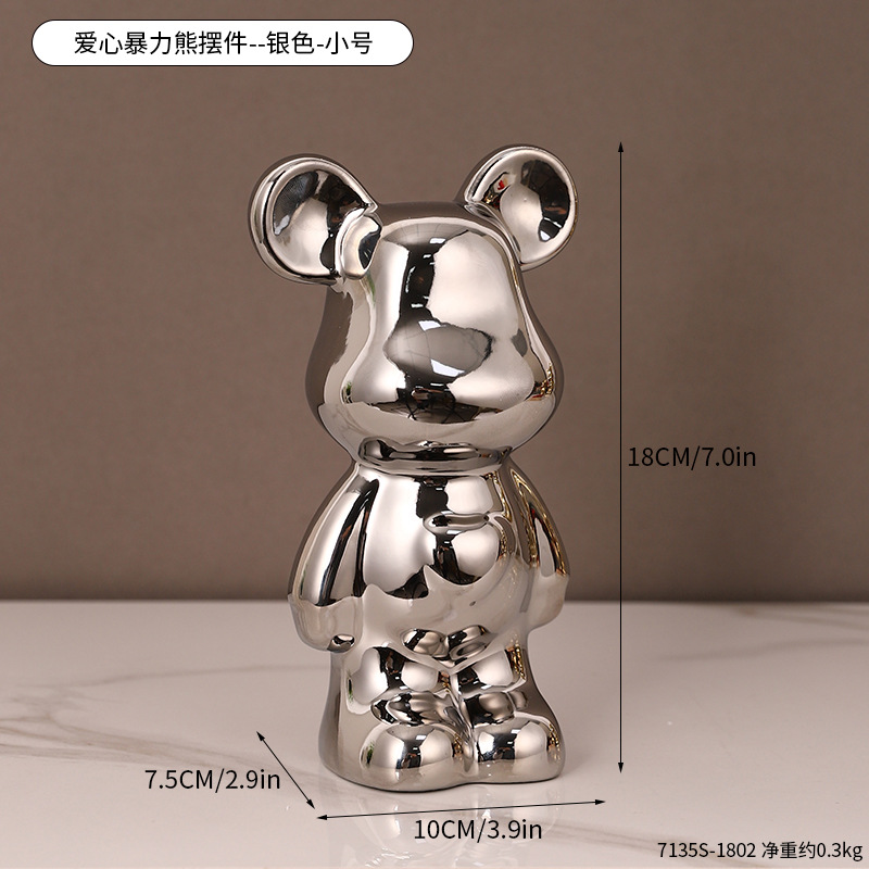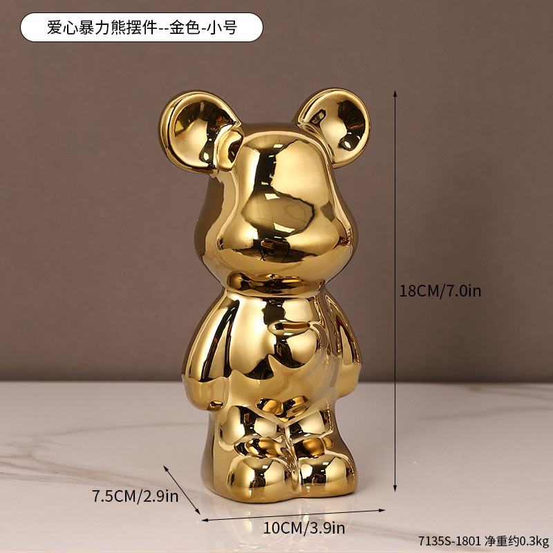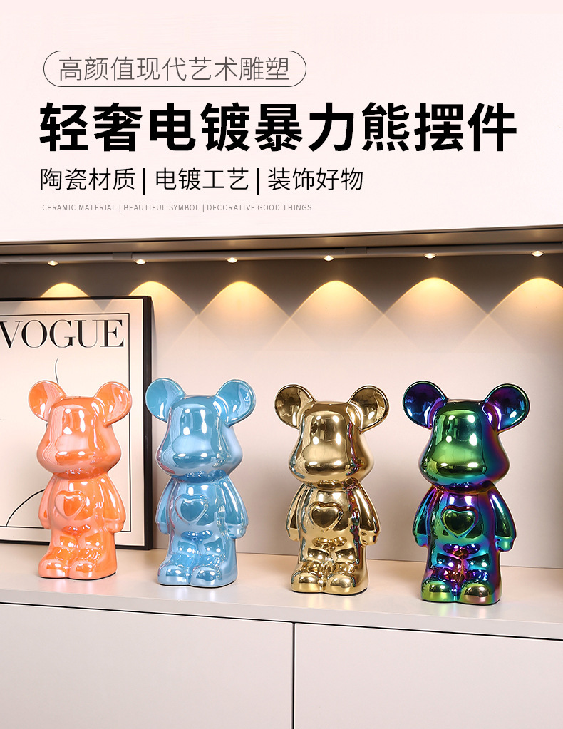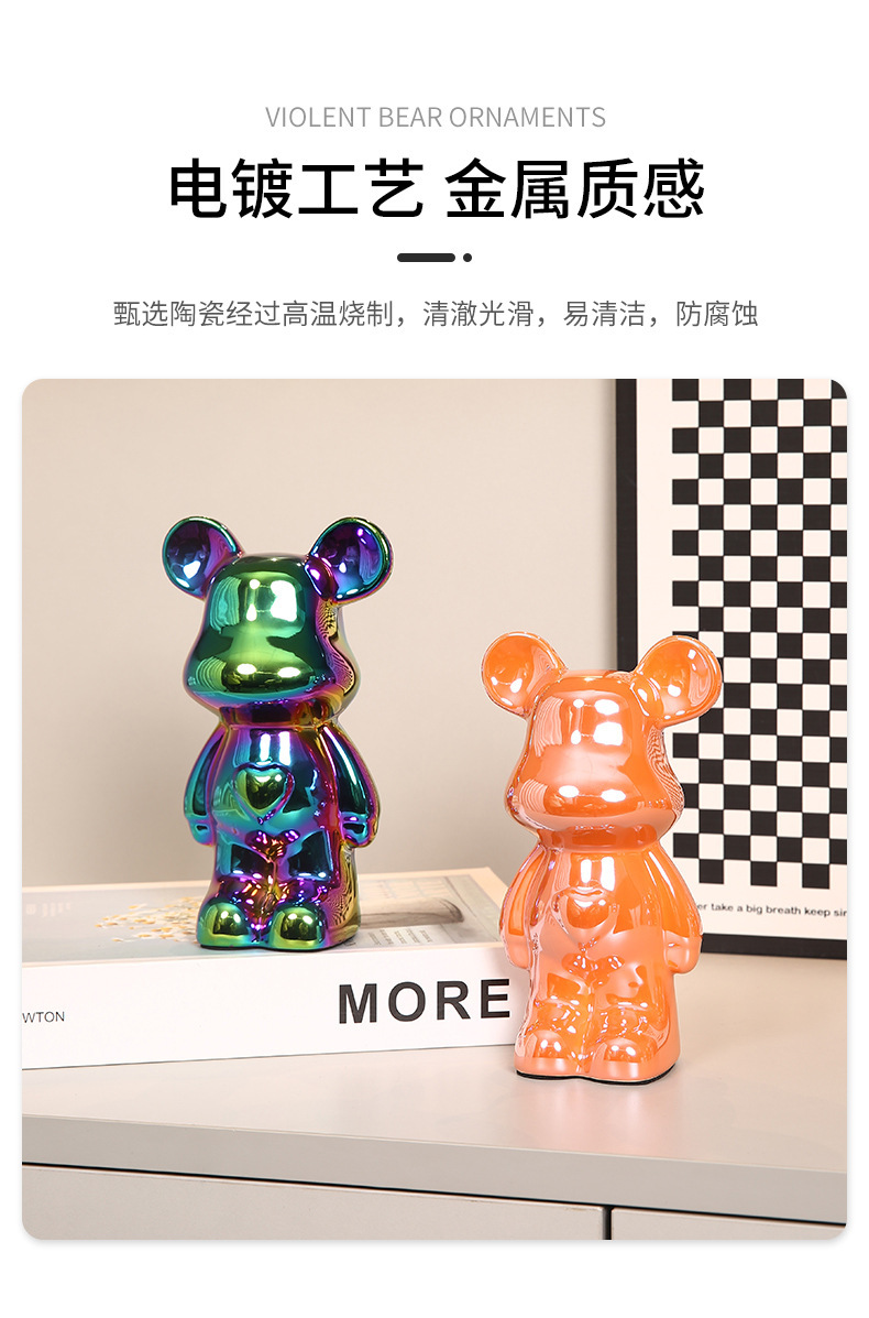 현대 폭력 곰 전기 도금 세라믹 홈 장식 귀여운 돼지 저금통 선물 세라믹 폭력 곰 작은 장식