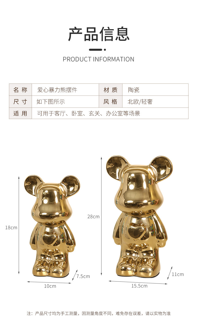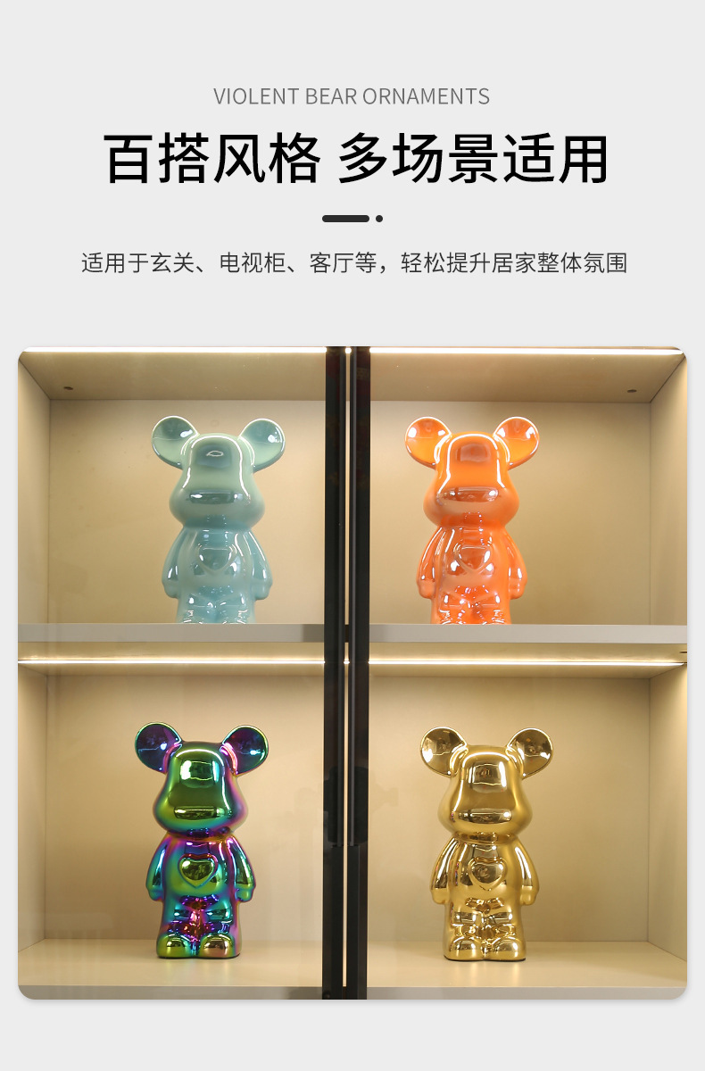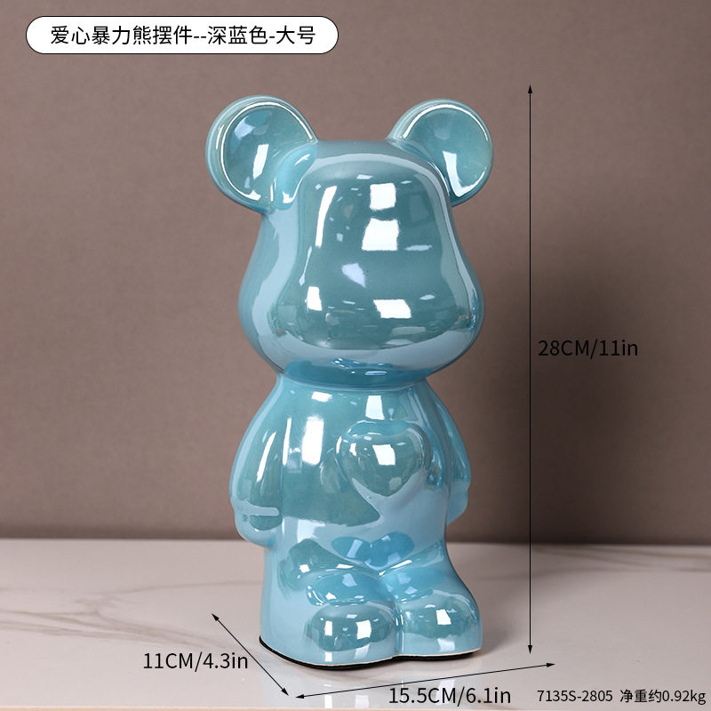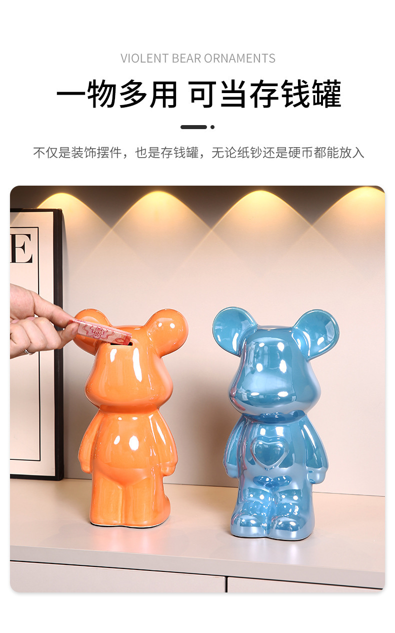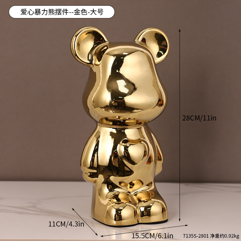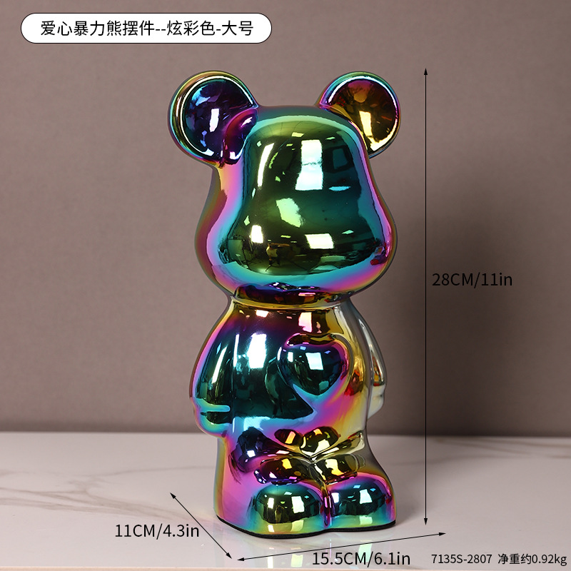 현대 폭력 곰 전기 도금 세라믹 홈 장식 귀여운 돼지 저금통 선물 세라믹 폭력 곰 작은 장식