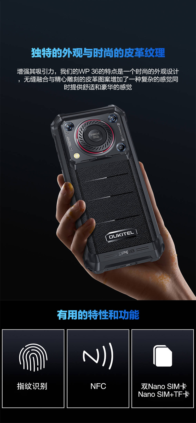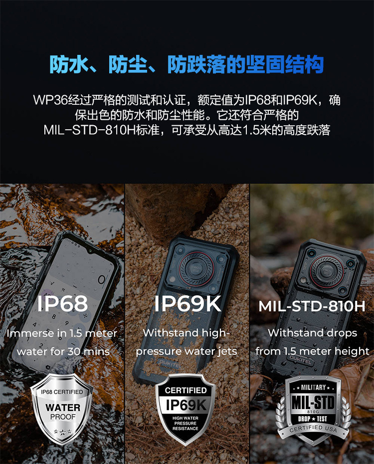 Ouqi WP36 3 방지 스마트 폰 모든 Netcom 방수 및 드롭 방지 10600 mA 배터리 슈퍼 롱 대기스토어 가기