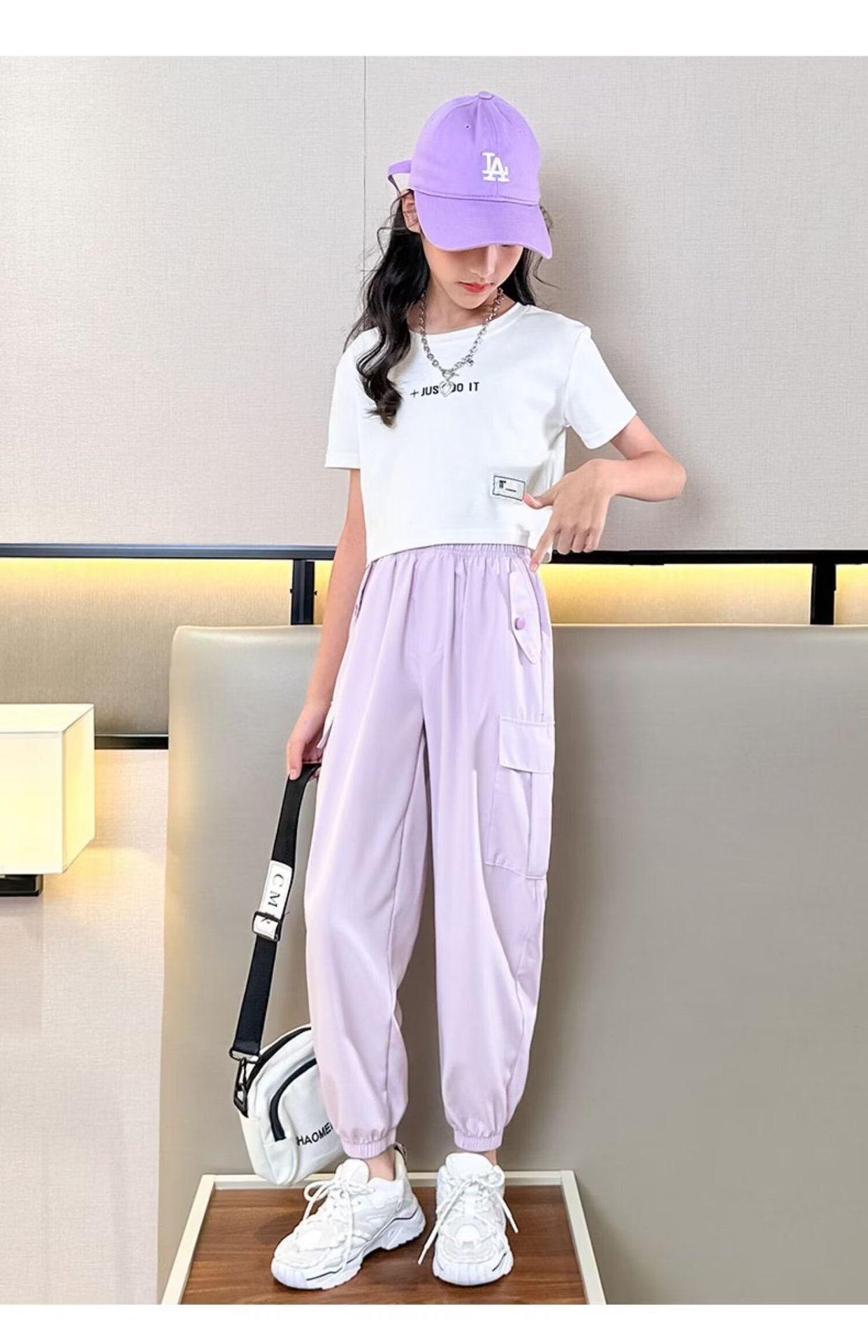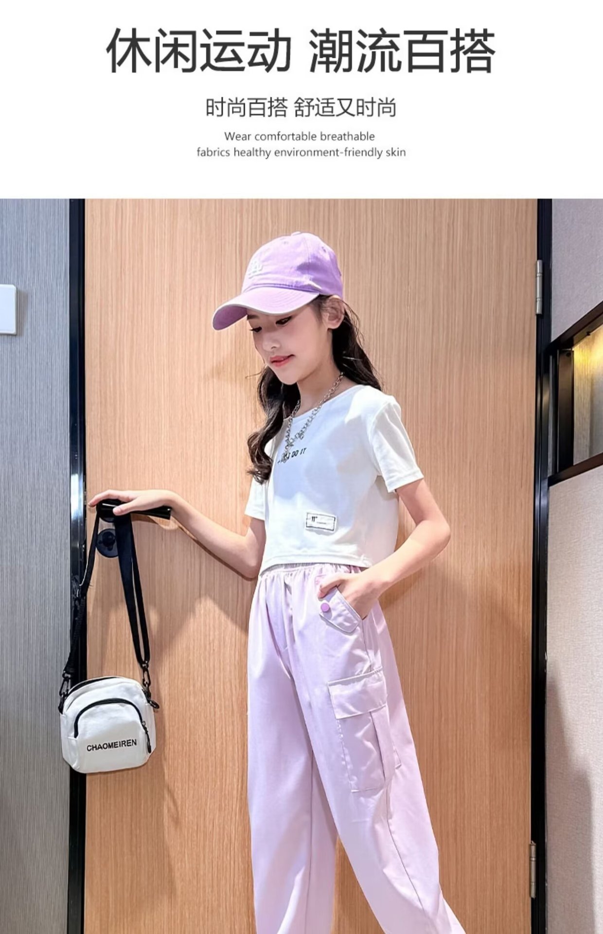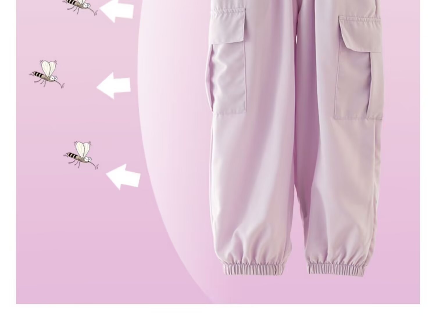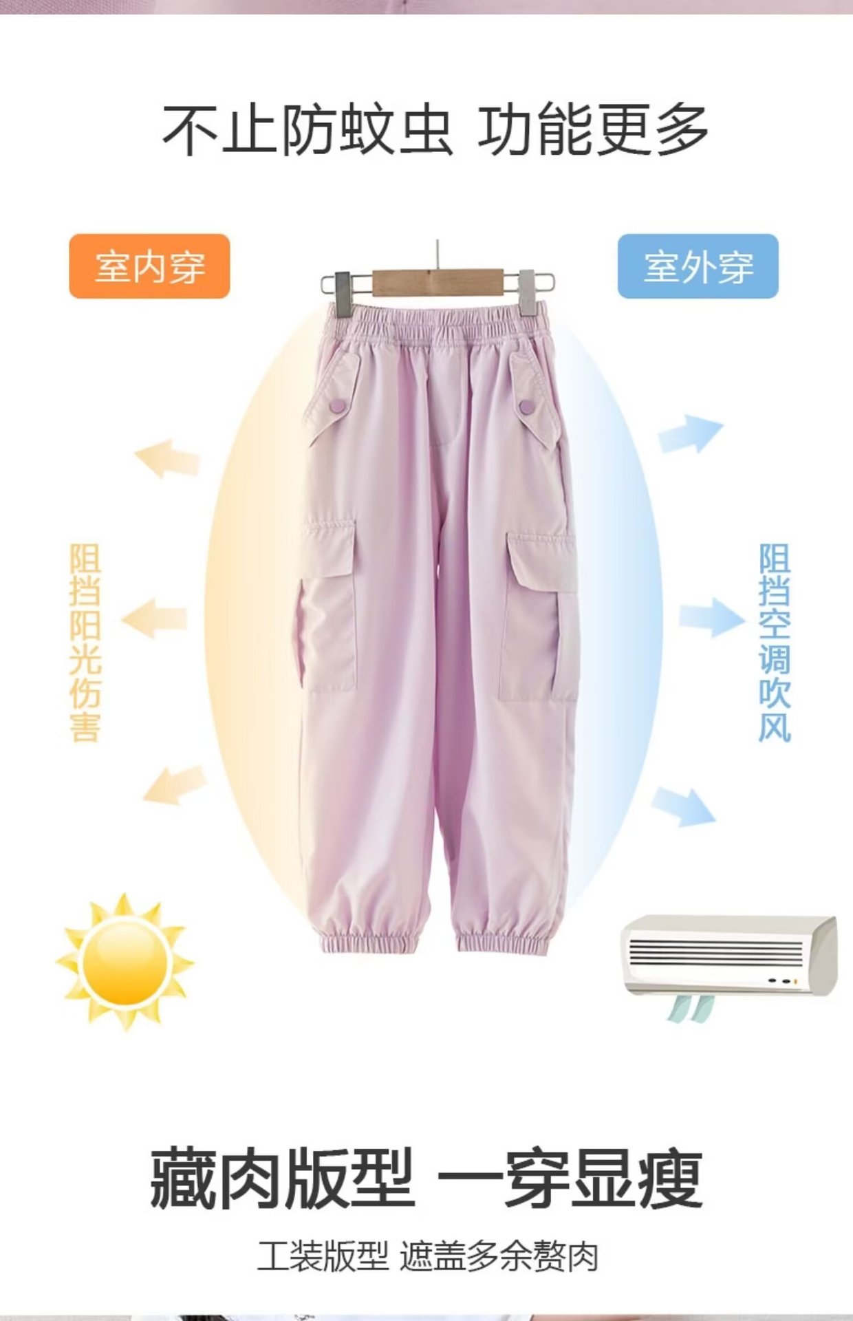 소녀 모기 방지 바지 여름 2024 새로운 얼음 실크 얇은 스포츠 바지 어린이 작업 바지 소녀 큰 어린이 여름 착용