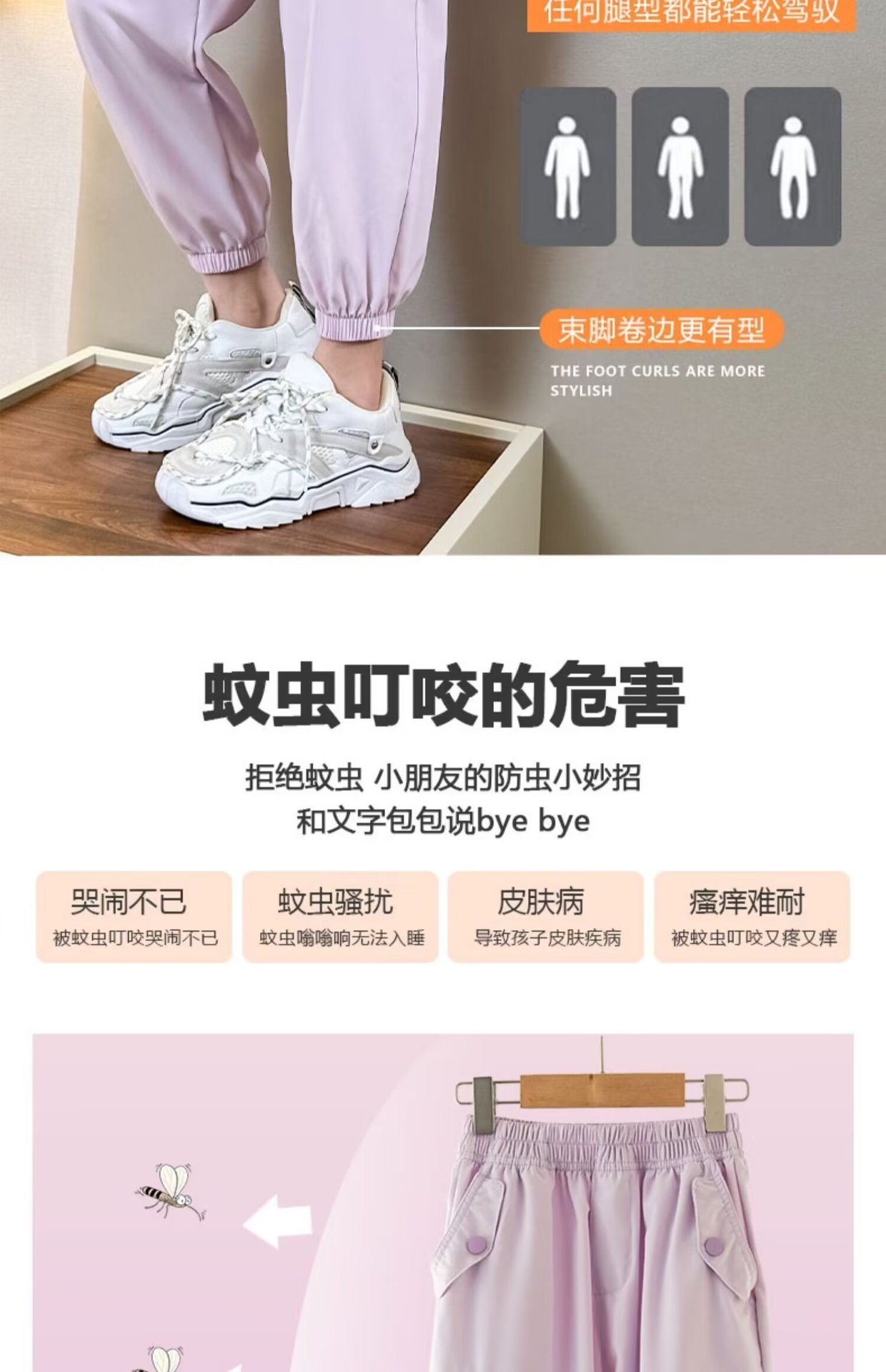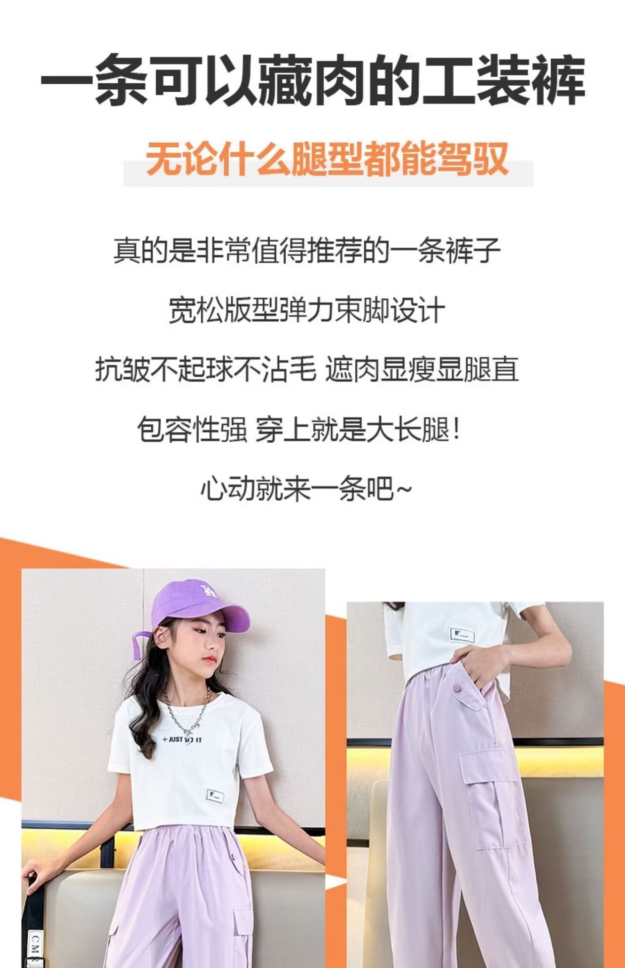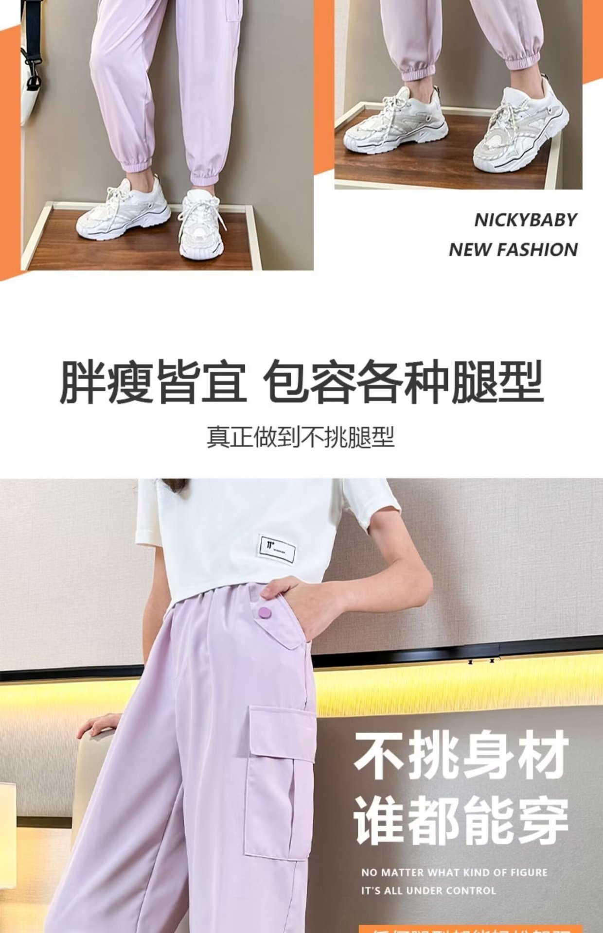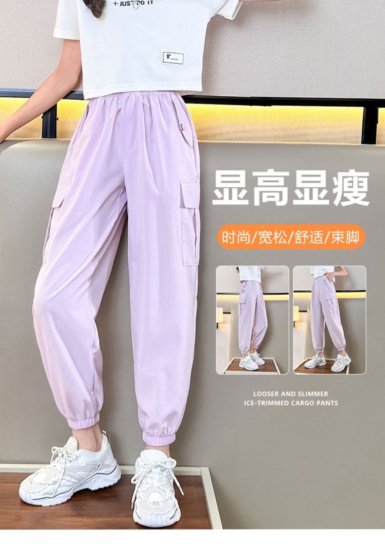 소녀 모기 방지 바지 여름 2024 새로운 얼음 실크 얇은 스포츠 바지 어린이 작업 바지 소녀 큰 어린이 여름 착용스토어 가기