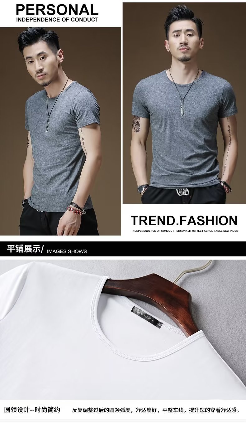 아이스 실크 짧은 소매 티셔츠 남성용 솔리드 컬러 라운드 넥 속옷베이스 셔츠 23 여름 슬림 핏 하프 슬리브 티셔츠 윗옷