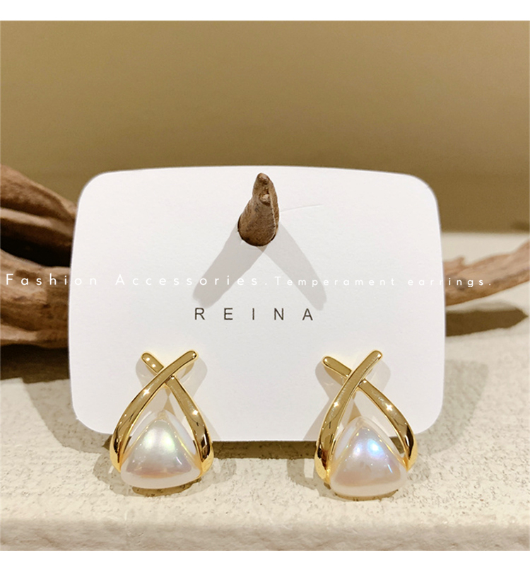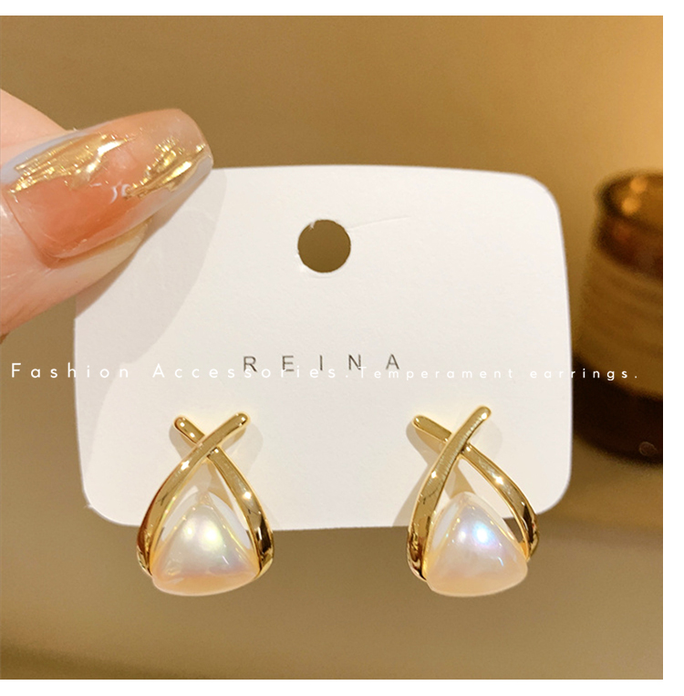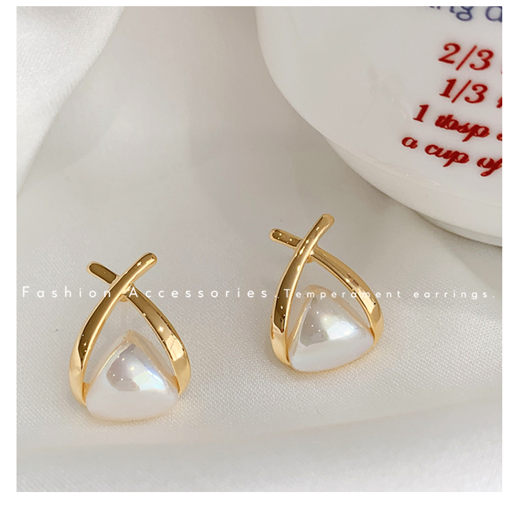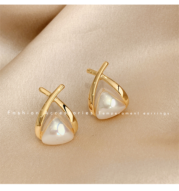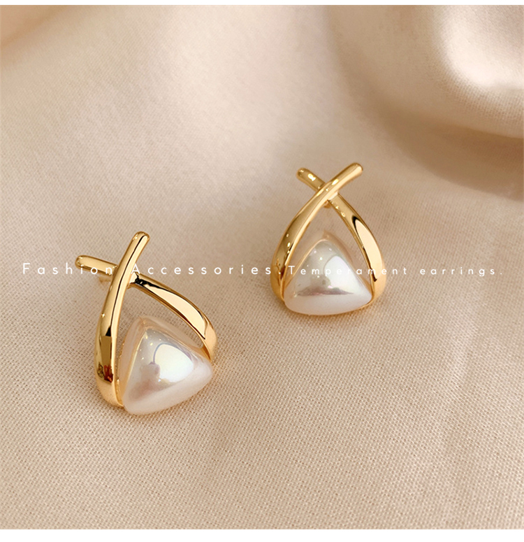 • 삼각형 진주 귀걸이-실버 바늘