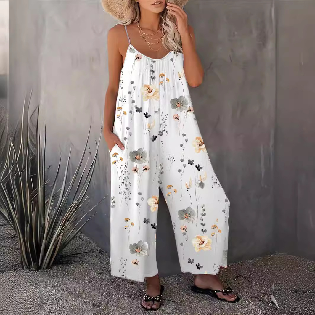유럽과 미국의 국경 2024 봄과 여름 캐주얼 여성 슬링 바지 가을 새로운 폭발 인쇄 여성용 민소매 바지스토어 가기