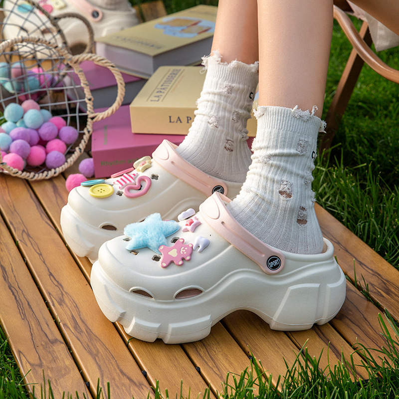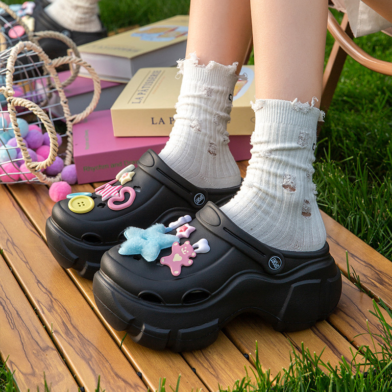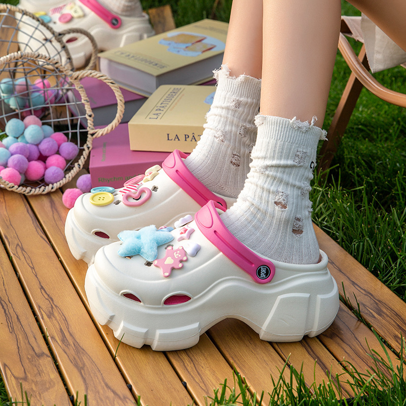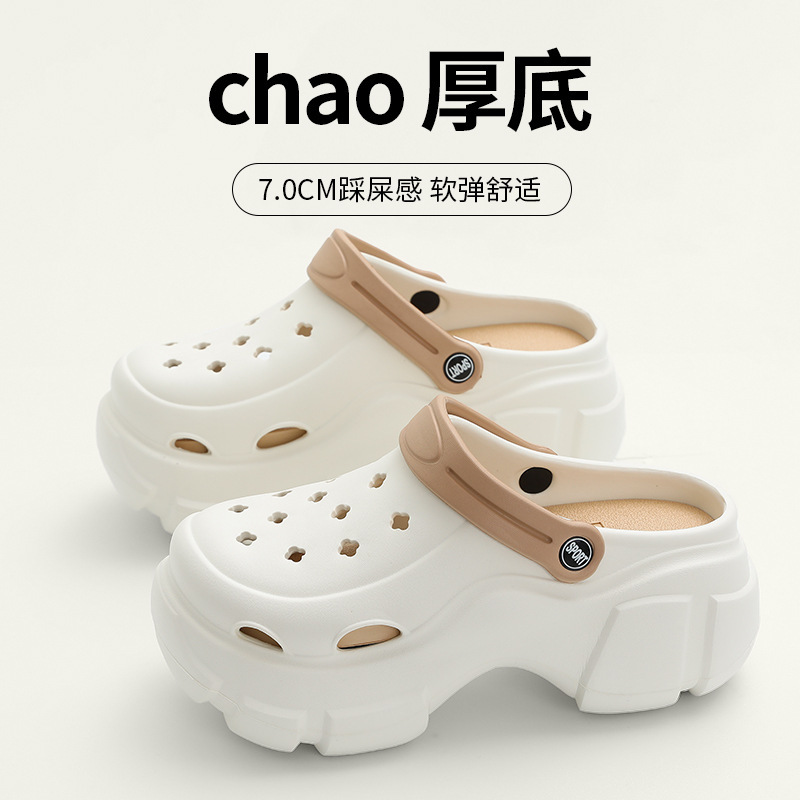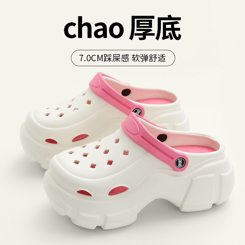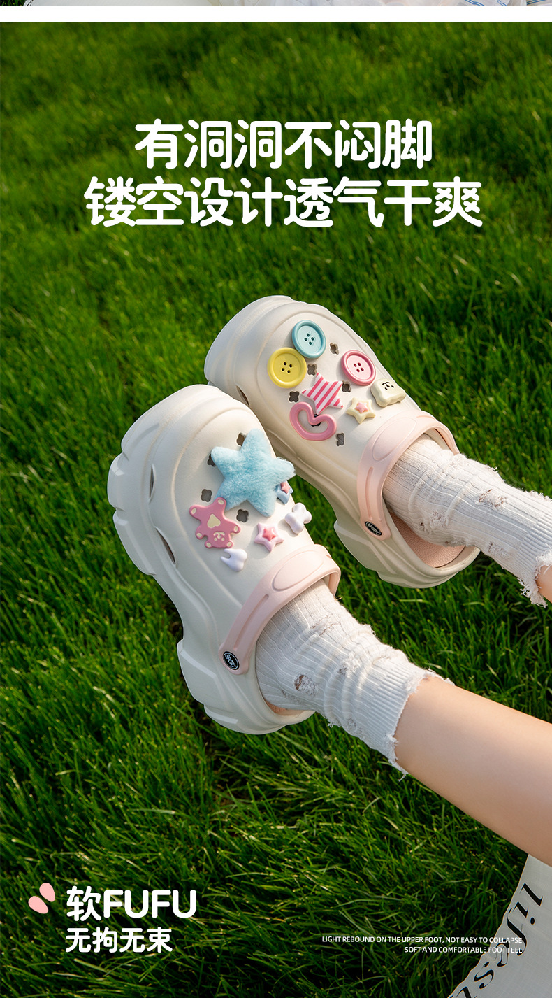 슬리퍼 여성의 2024 새로운 스텝 배설물 두꺼운 바닥 투웨어 느낌 미끄럼 방지 통기성 비 냄새 나는 발 슬리퍼 홈 도매 증가스토어 가기