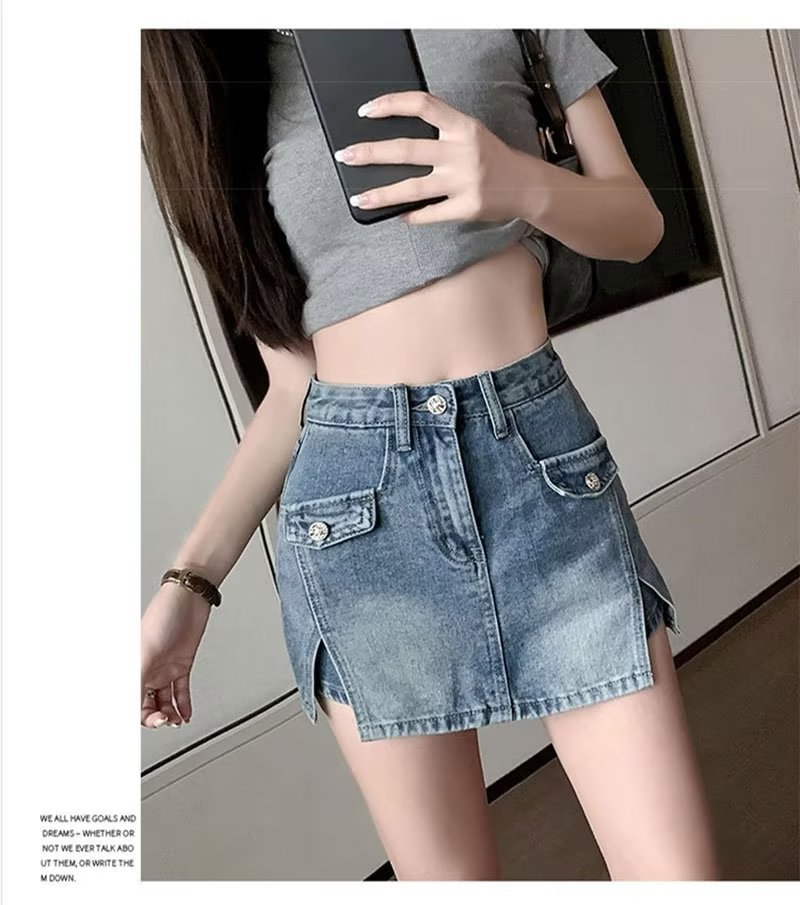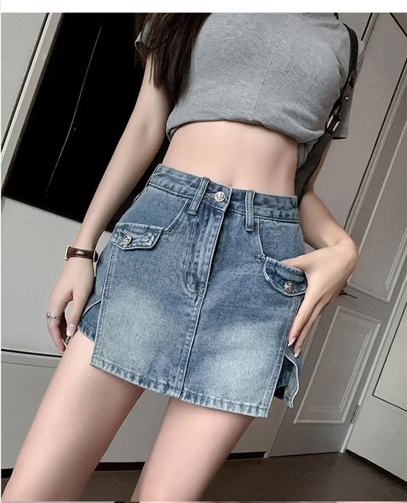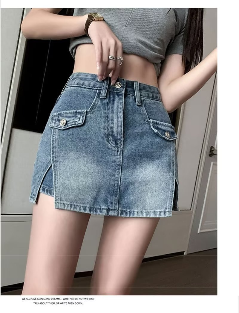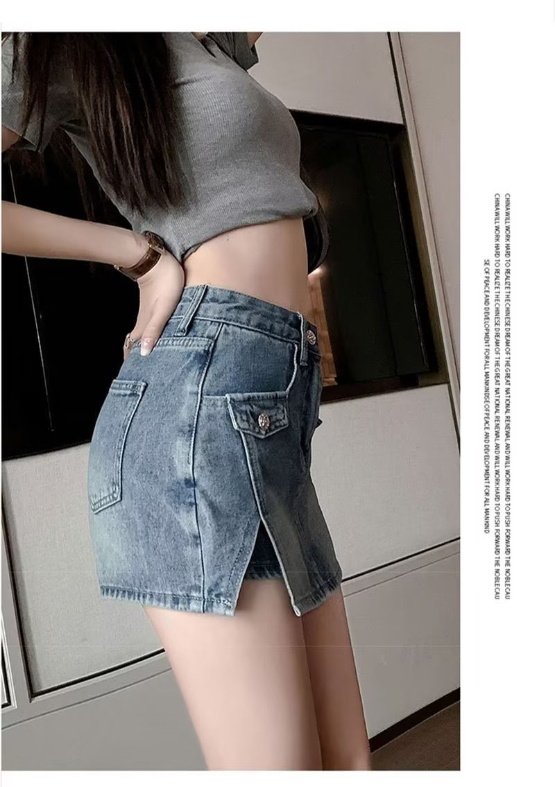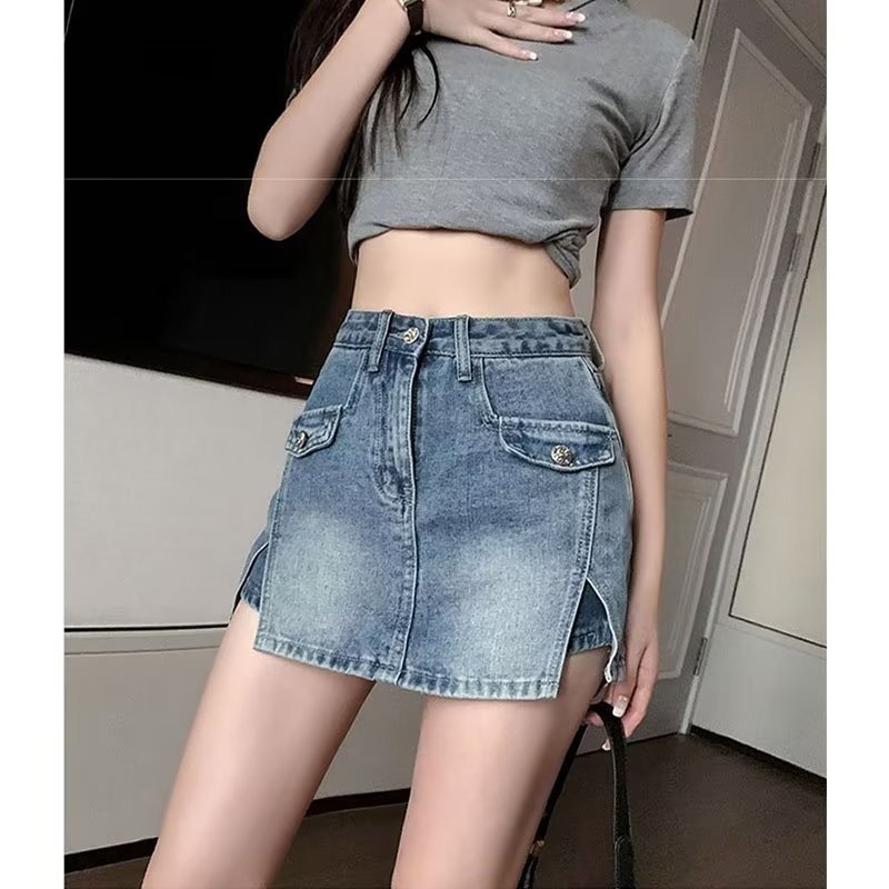 스플릿 데님 스커트 여성 여름 새로운 높은 허리 뜨거운 소녀 디자인 센스 엉덩이 스커트 스커트 스커트