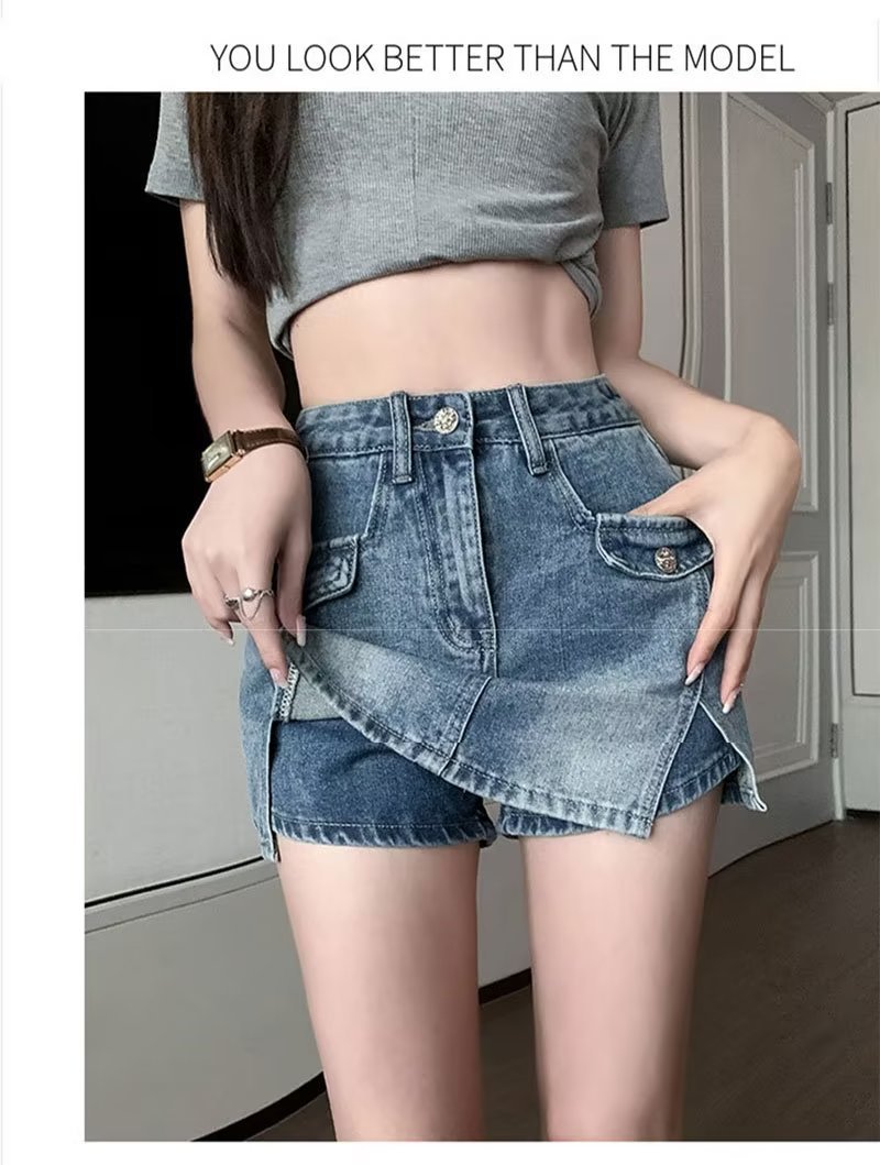 스플릿 데님 스커트 여성 여름 새로운 높은 허리 뜨거운 소녀 디자인 센스 엉덩이 스커트 스커트 스커트스토어 가기