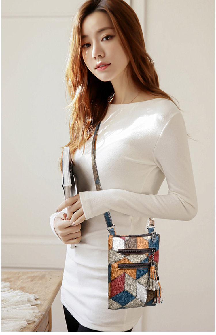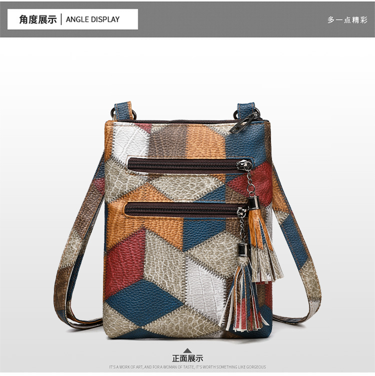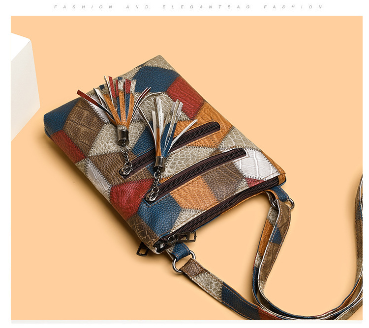 국경 간 복고풍 Pu 부드러운 가죽 멀티 포켓 어깨 크로스 바디 엄마 가방 대비 컬러 격자 무늬 술 중년 핸드백