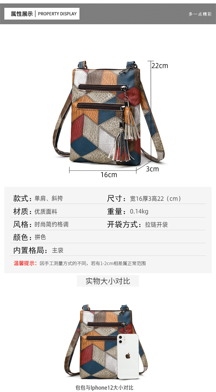 국경 간 복고풍 Pu 부드러운 가죽 멀티 포켓 어깨 크로스 바디 엄마 가방 대비 컬러 격자 무늬 술 중년 핸드백스토어 가기