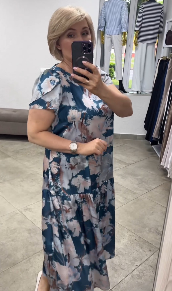 여름 새로운 도착 꽃 면화 실크 원피스 여성의 여름 우아한 어머니 배 플러스 사이즈 인공 면 긴 치마스토어 가기