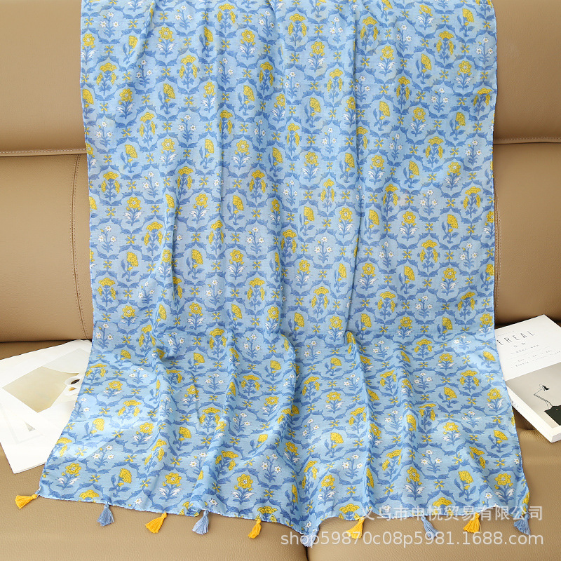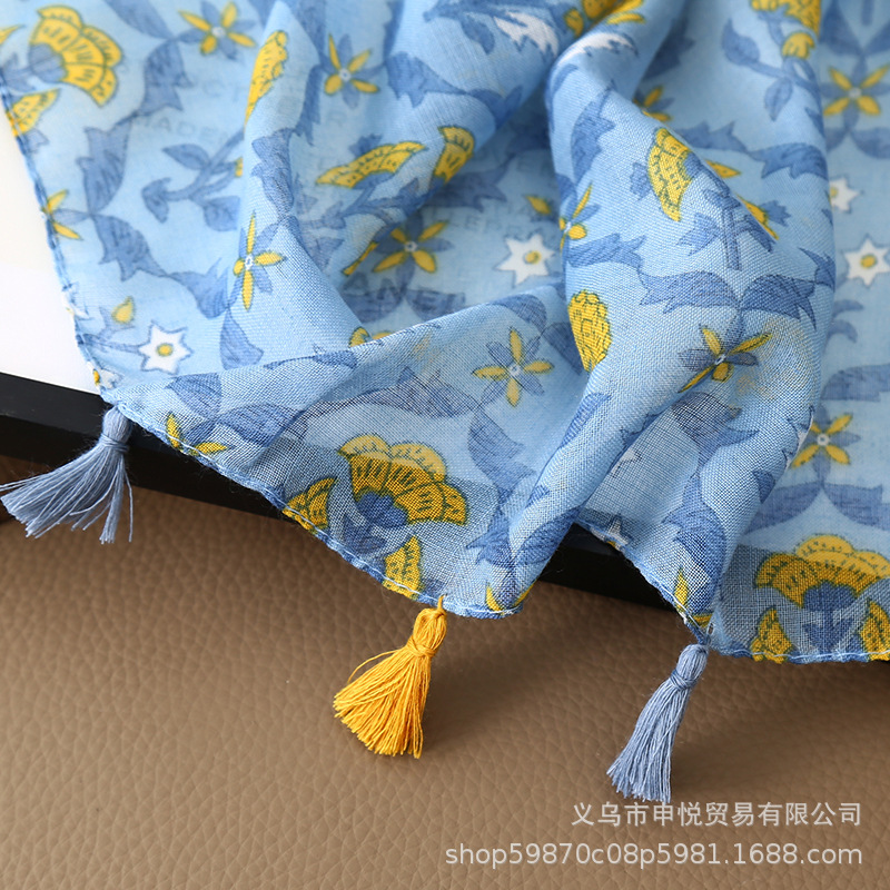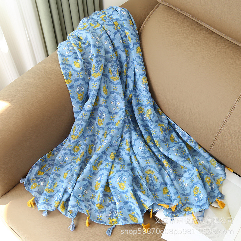 봄과 가을 새로운 발리 원사 면화 린넨 손 느낌 술 꽃 인쇄 스카프 모든 경기 패션 여행 선 스크린 목도리 여성스토어 가기