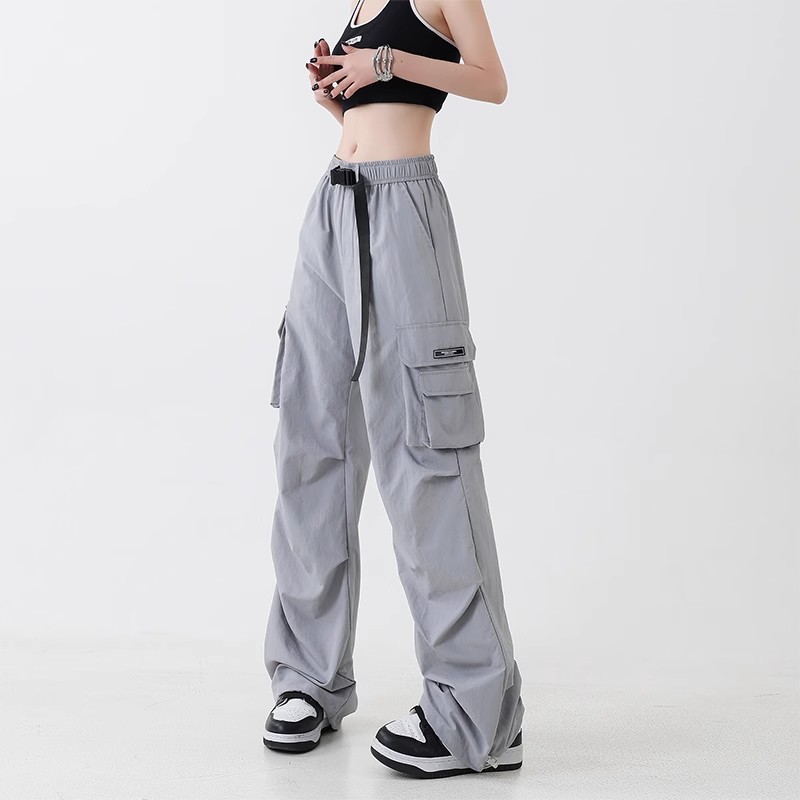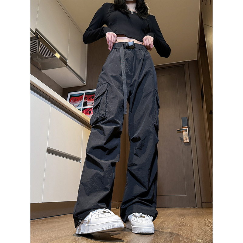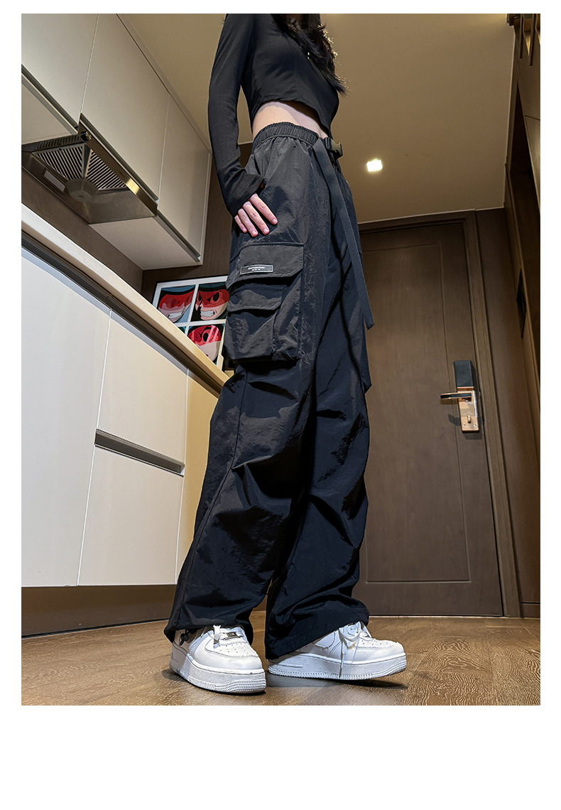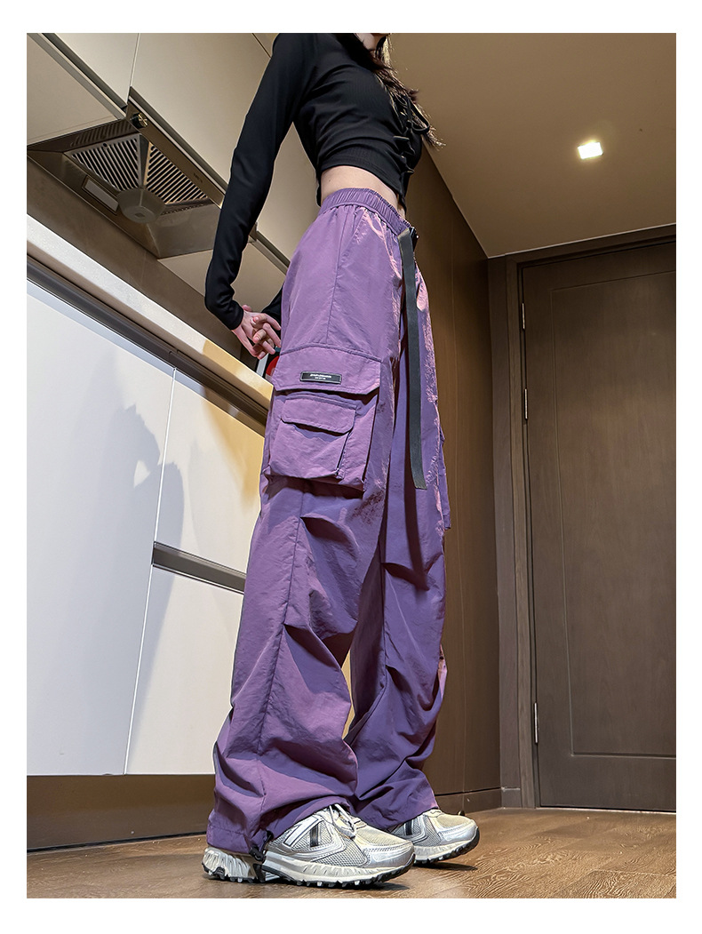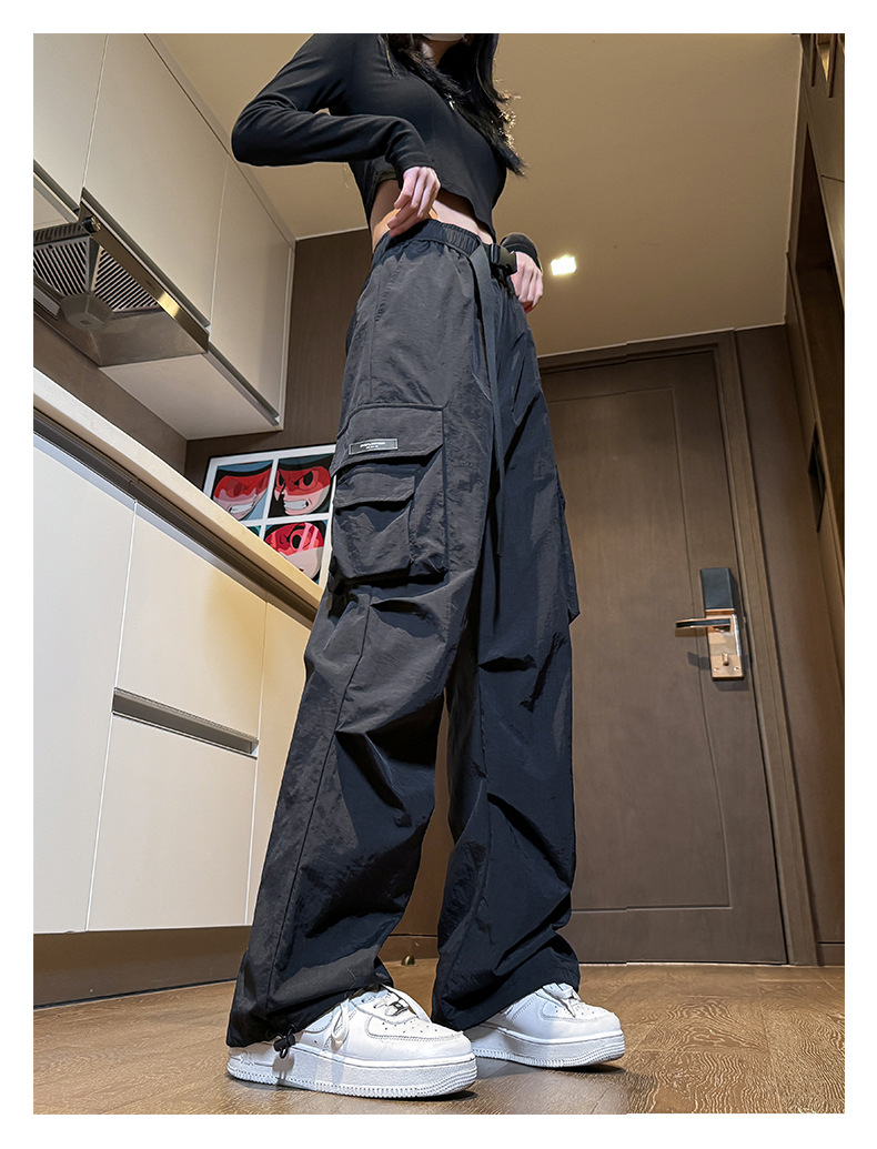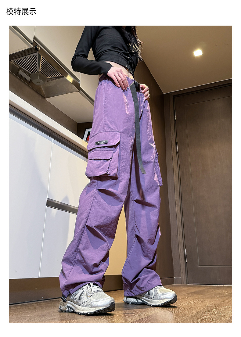 NASA 아메리칸 스타일 작업복 남성 및 여성 여름 2025 신상 등산 스포츠 팬츠, 캐주얼 와이드 레그 아이스 실크 팬츠스토어 가기