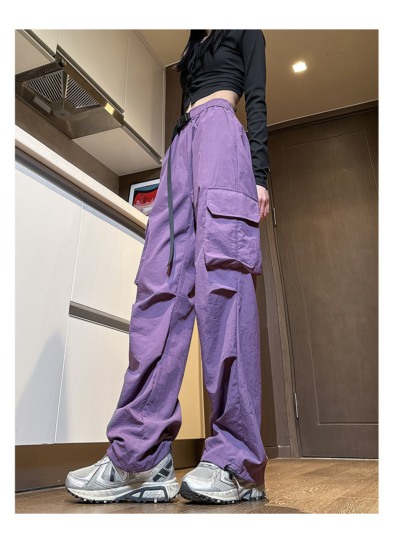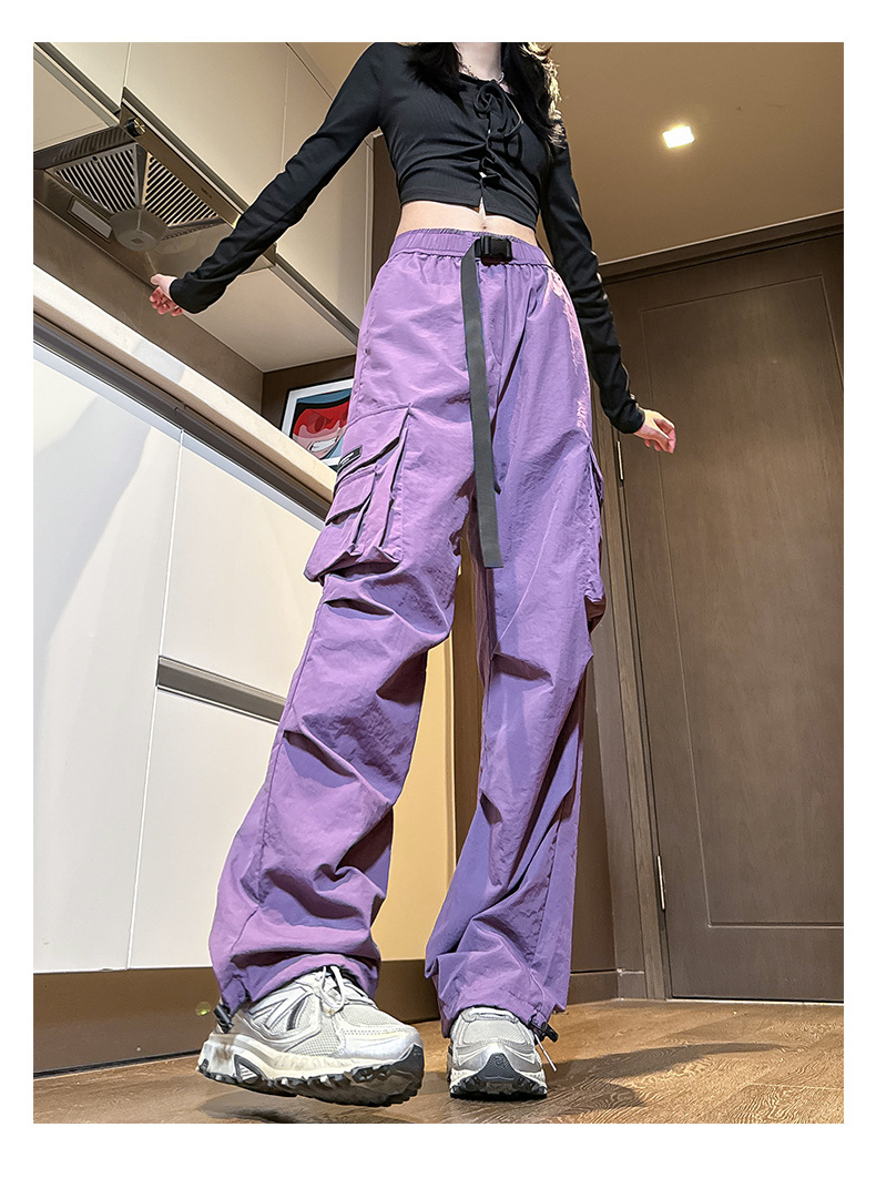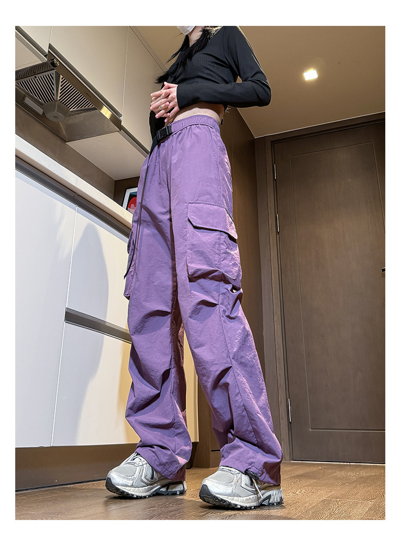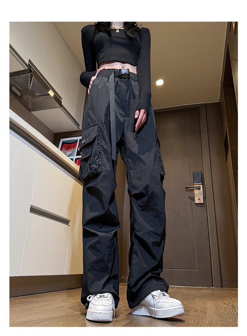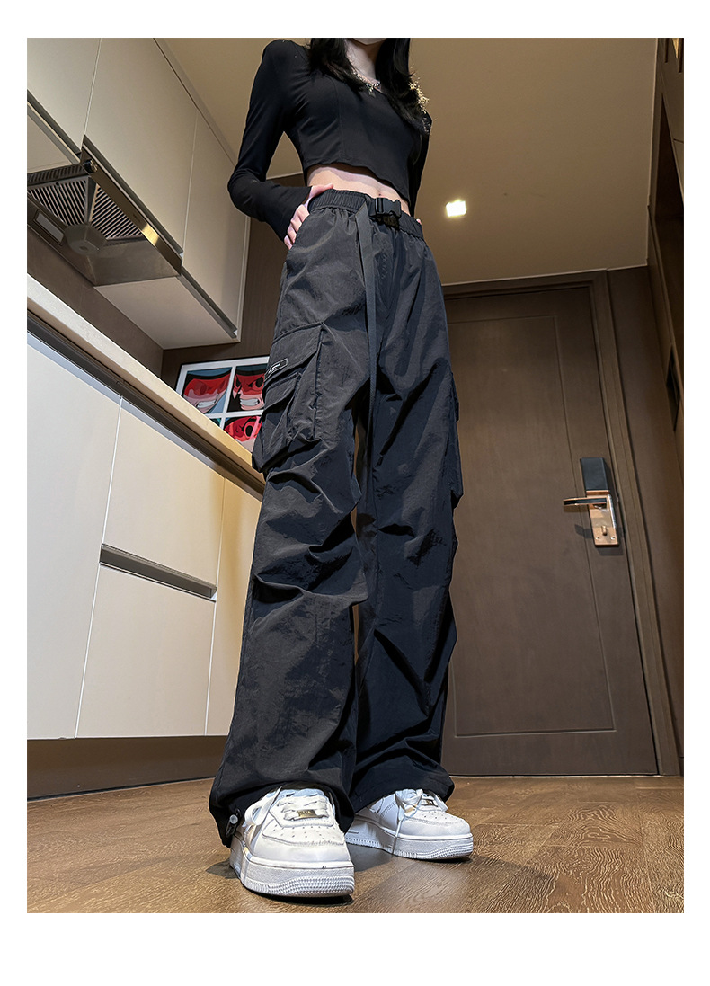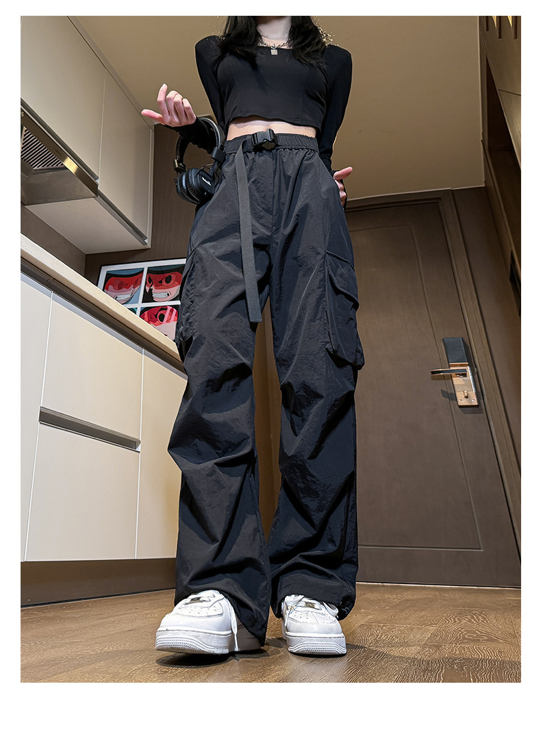 NASA 아메리칸 스타일 작업복 남성 및 여성 여름 2025 신상 등산 스포츠 팬츠, 캐주얼 와이드 레그 아이스 실크 팬츠스토어 가기