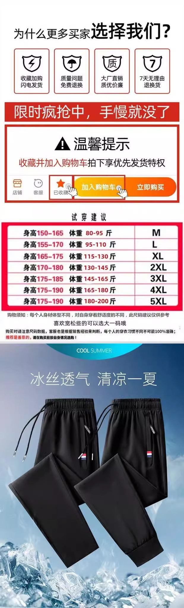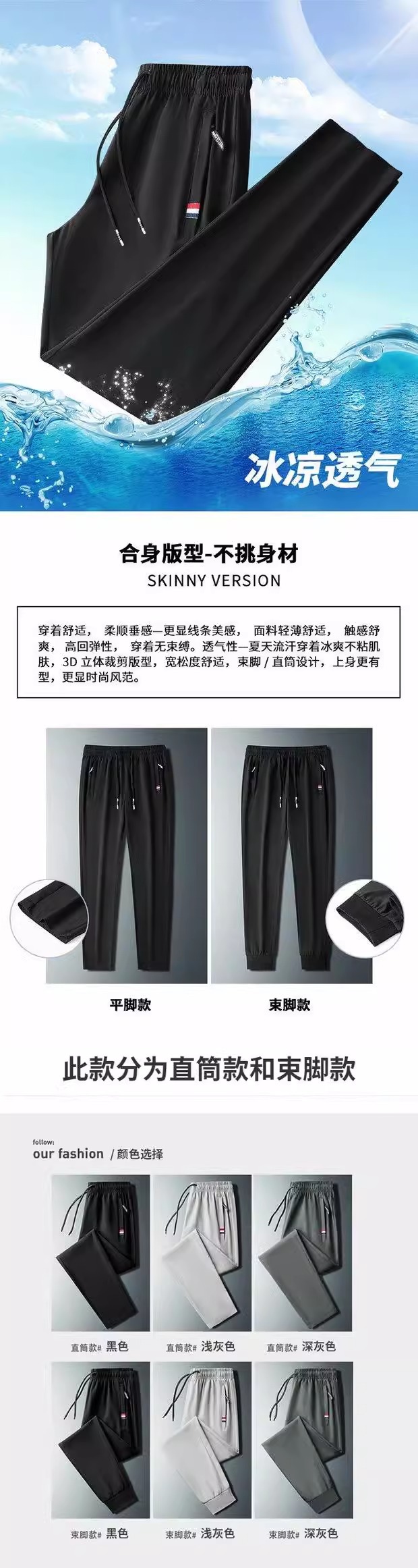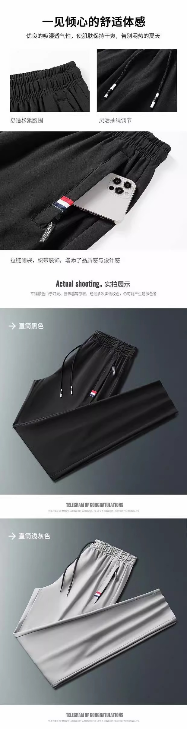 아이스 실크 남자 바지 여름 캐주얼 얇은 스포츠 느슨한 에어컨 바지 남자 올 매치 빠른 건조 통기성 스트레치 스웨트 팬츠스토어 가기