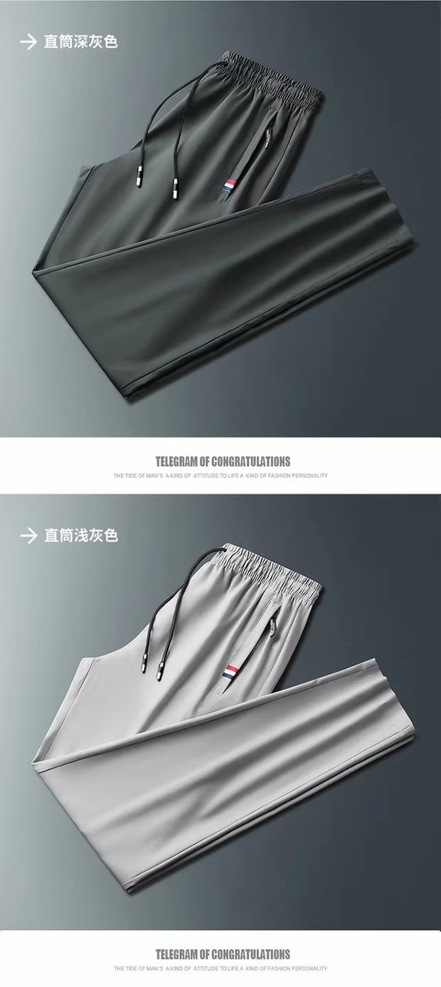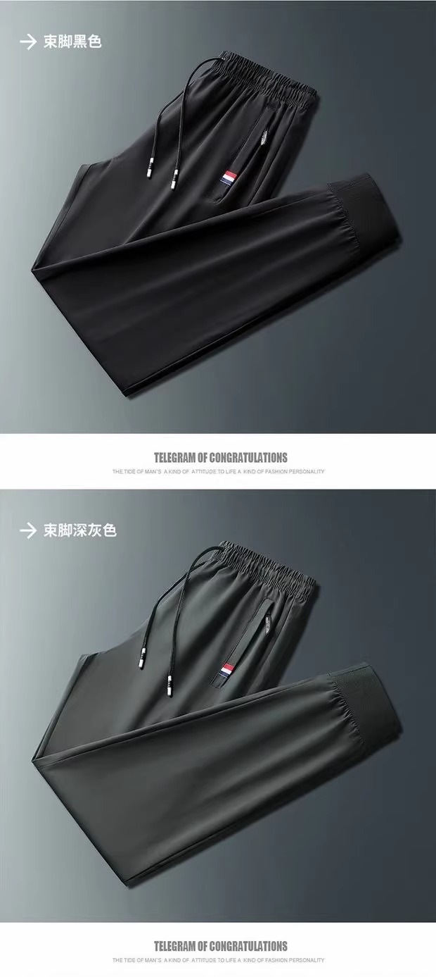 아이스 실크 남자 바지 여름 캐주얼 얇은 스포츠 느슨한 에어컨 바지 남자 올 매치 빠른 건조 통기성 스트레치 스웨트 팬츠