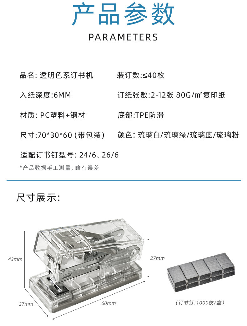 Ins 스타일 미니 스테이플러 작은 학생 스테이플러 비 인쇄 간단한 단색 틈새 취미 스테이플러