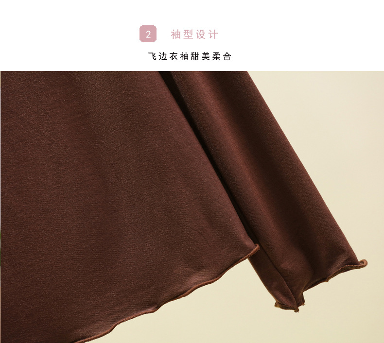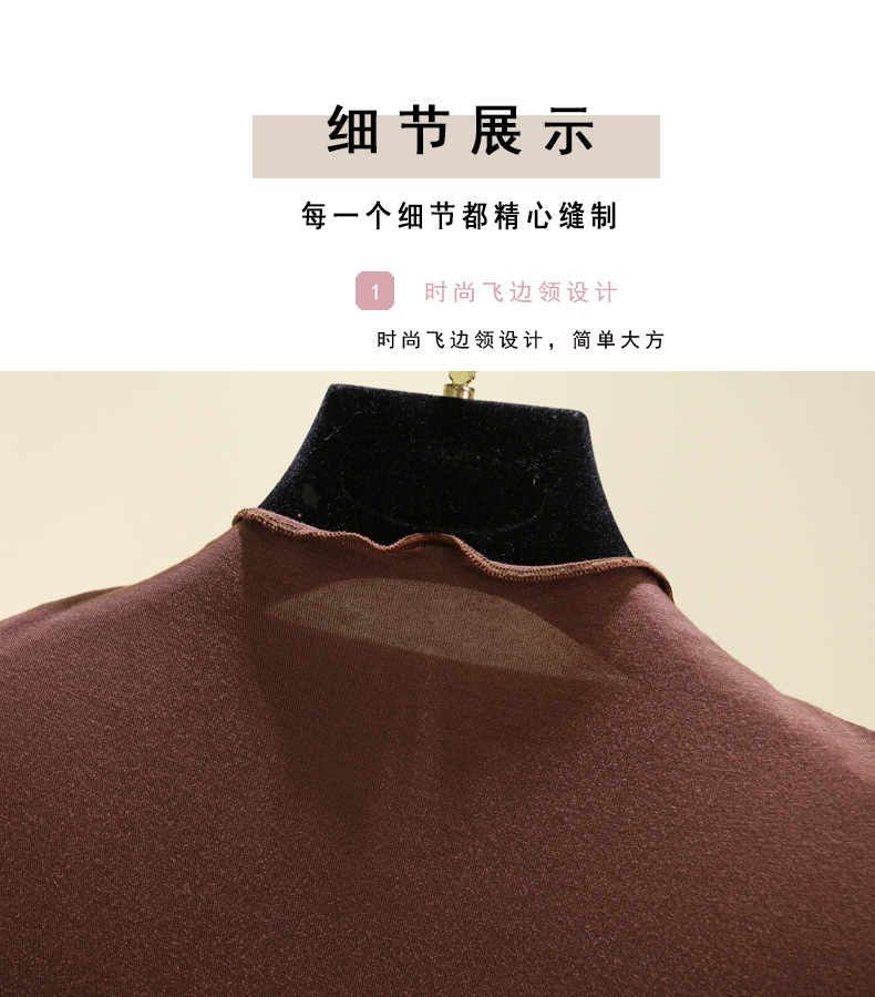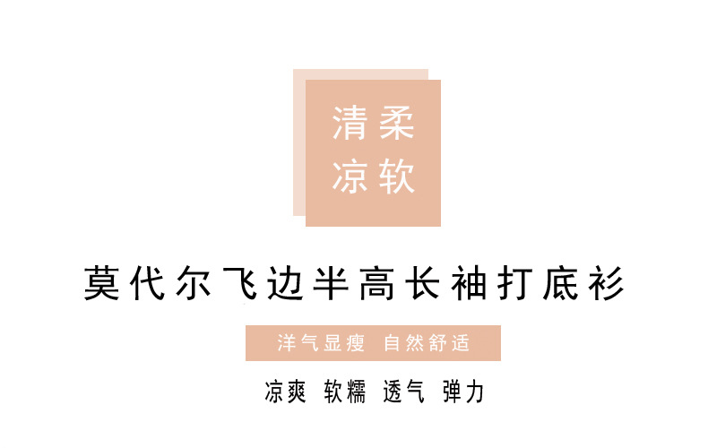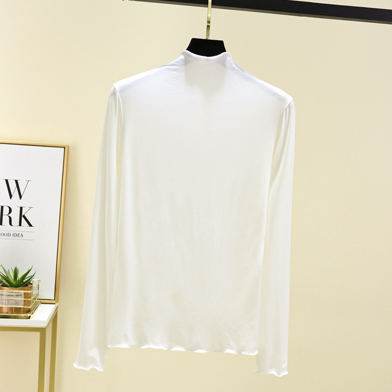 봄과 가을 반 높이 칼라베이스 셔츠 여성용 모달 플라잉 엣지 스타일시 올 매치 긴팔 티셔츠 얇은 슬림 핏 탑스토어 가기