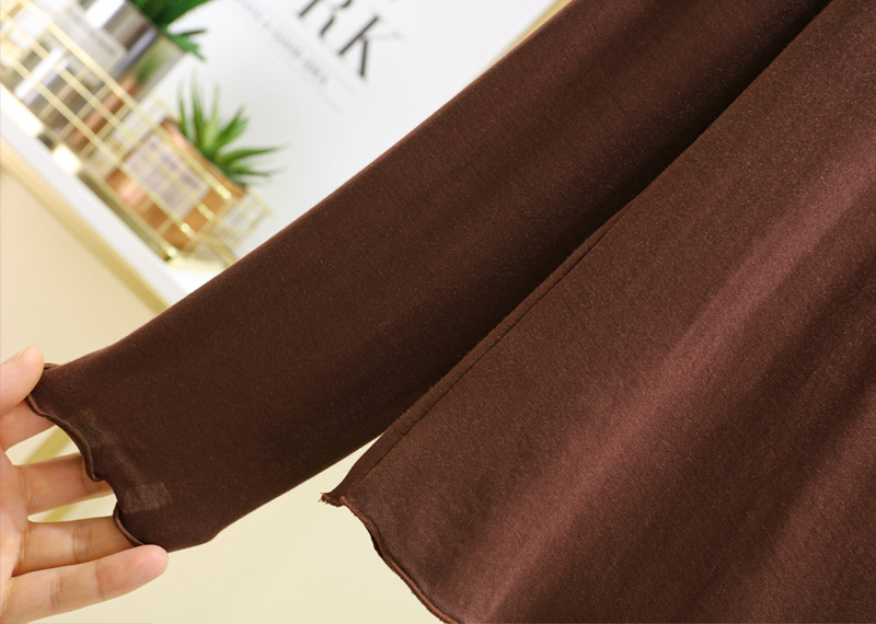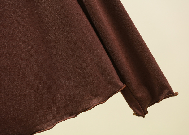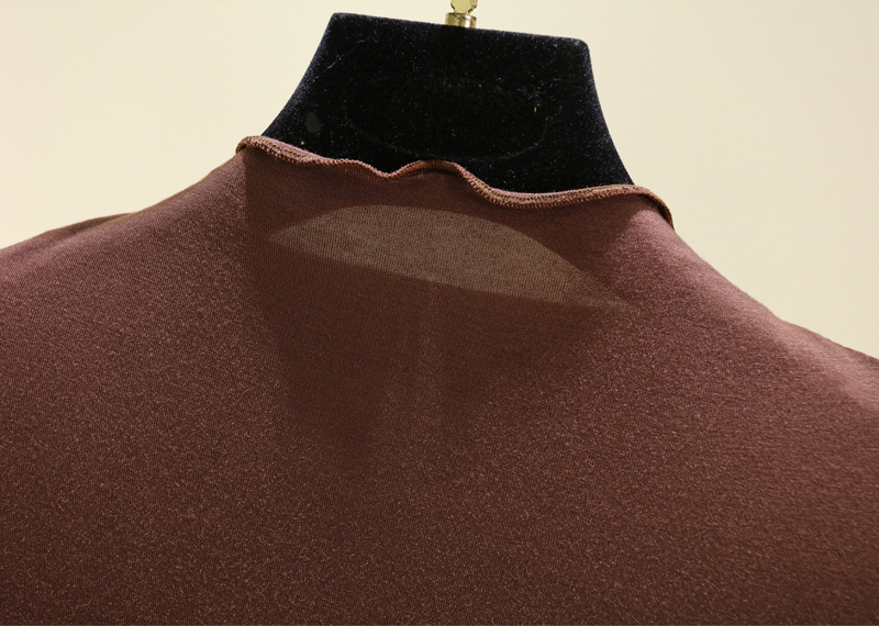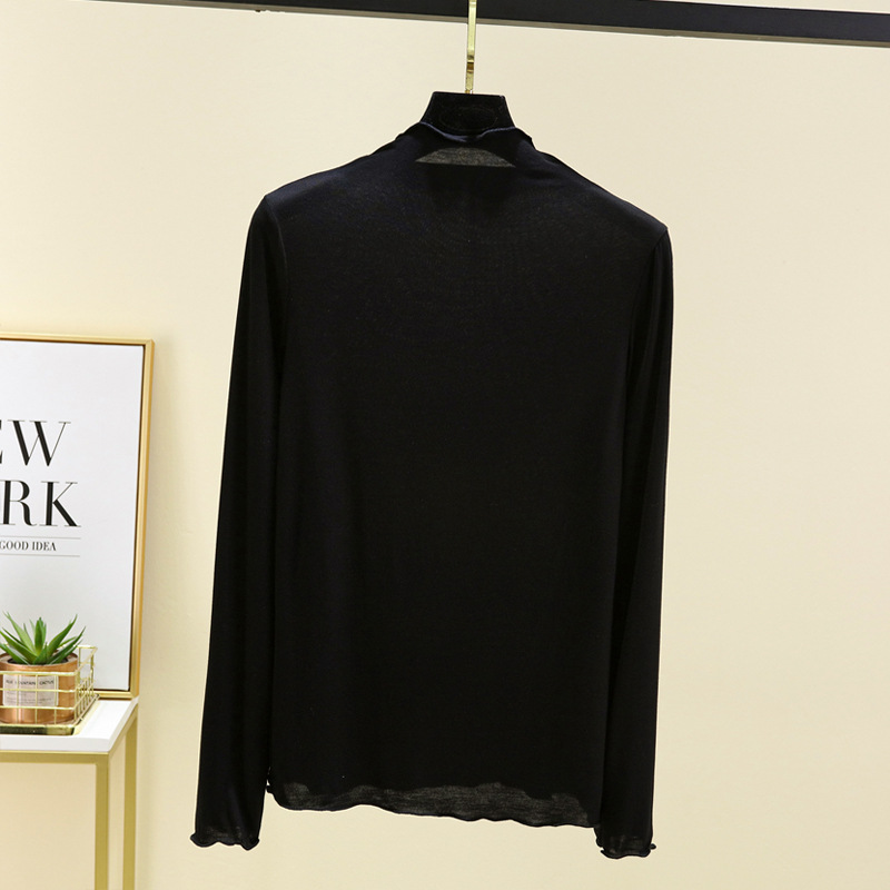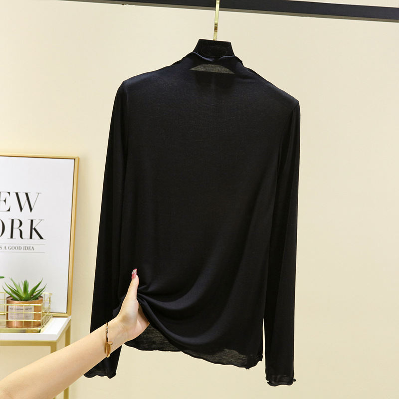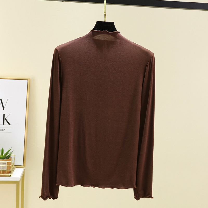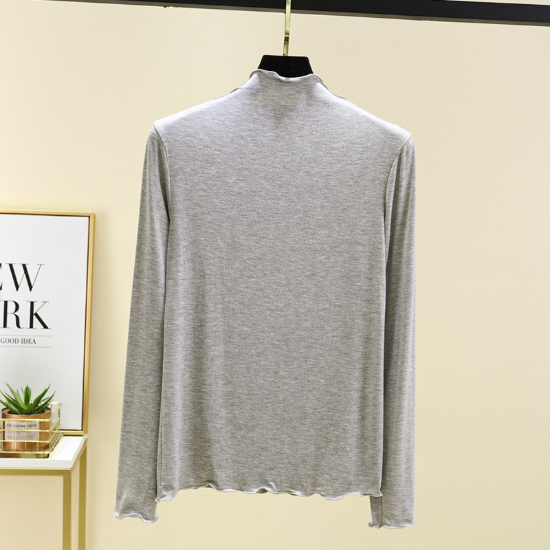 봄과 가을 반 높이 칼라베이스 셔츠 여성용 모달 플라잉 엣지 스타일시 올 매치 긴팔 티셔츠 얇은 슬림 핏 탑