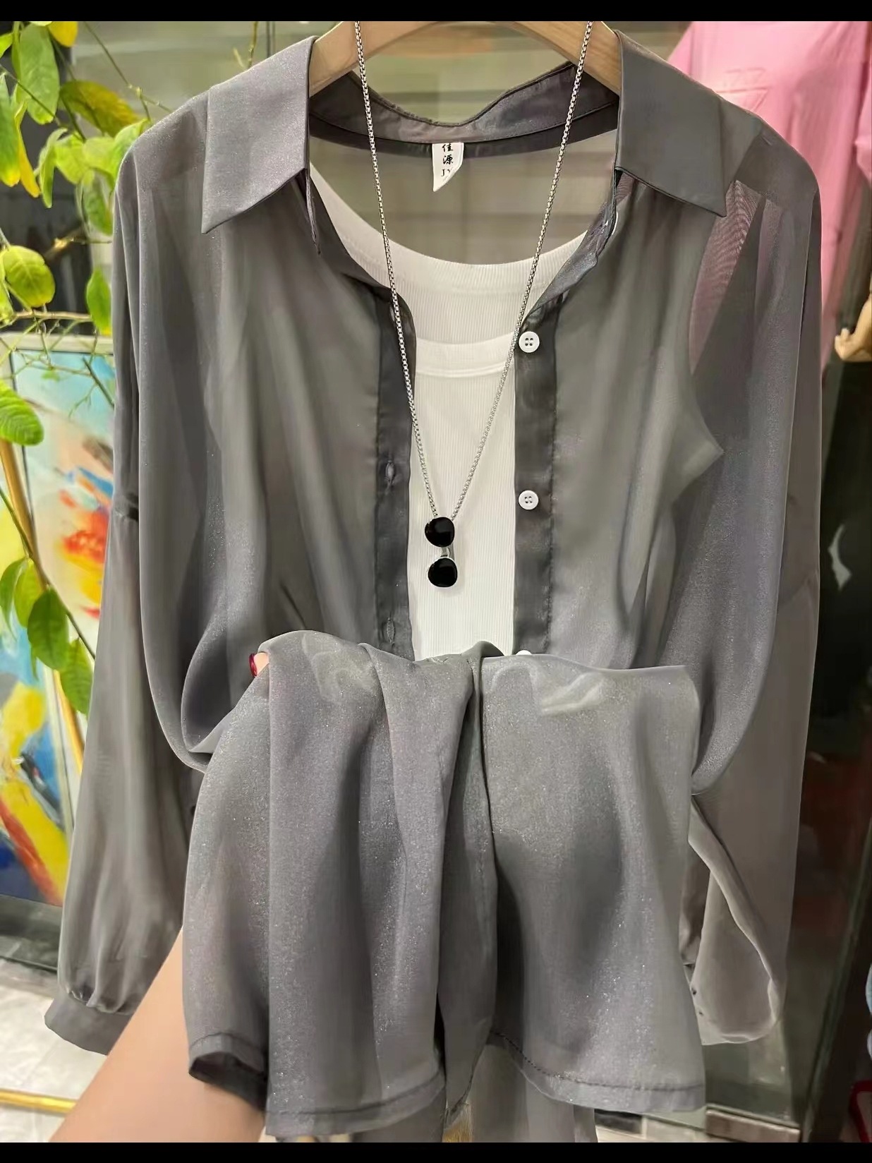 아이스 실크 자외선 차단 셔츠 여성 여름 얇은 카디건 디자인 틈새 드레이프 블라우스 셔츠 자켓 탑스토어 가기