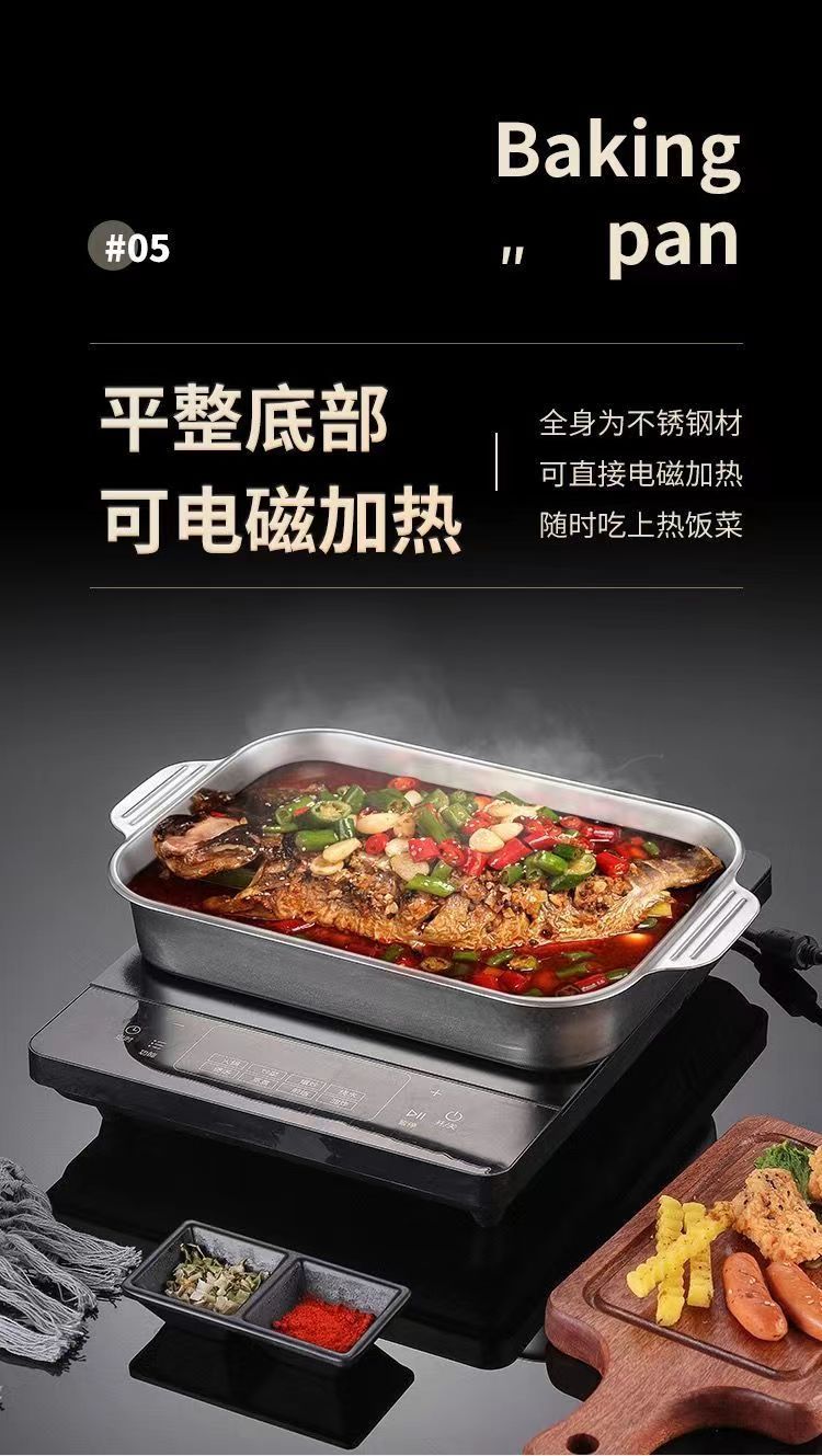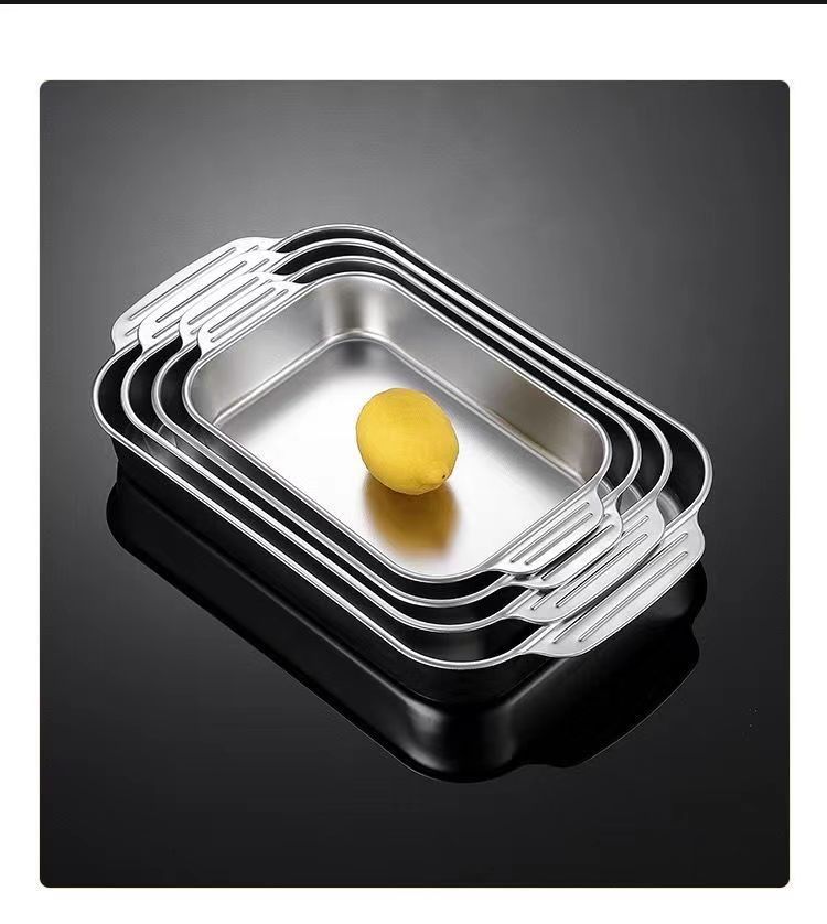 스테인레스 스틸 구운 어판 가정용 트레이 유도 쿠커 화재 직사각형 딥 플레이트 베이킹 플레이트 생선 스토브 플레이트 식품 등급
