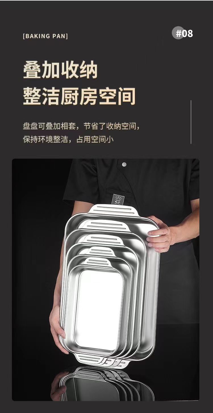 스테인레스 스틸 구운 어판 가정용 트레이 유도 쿠커 화재 직사각형 딥 플레이트 베이킹 플레이트 생선 스토브 플레이트 식품 등급스토어 가기